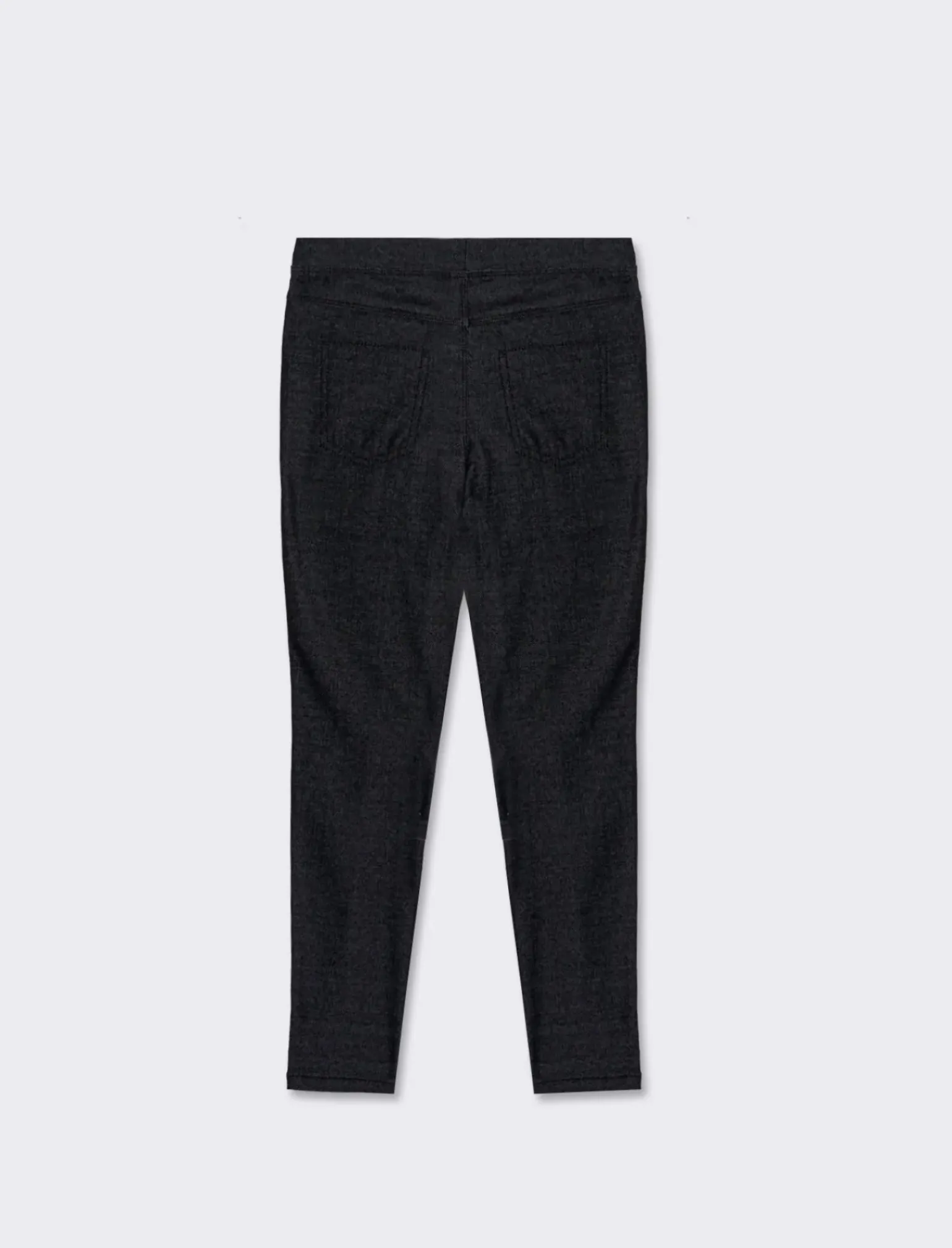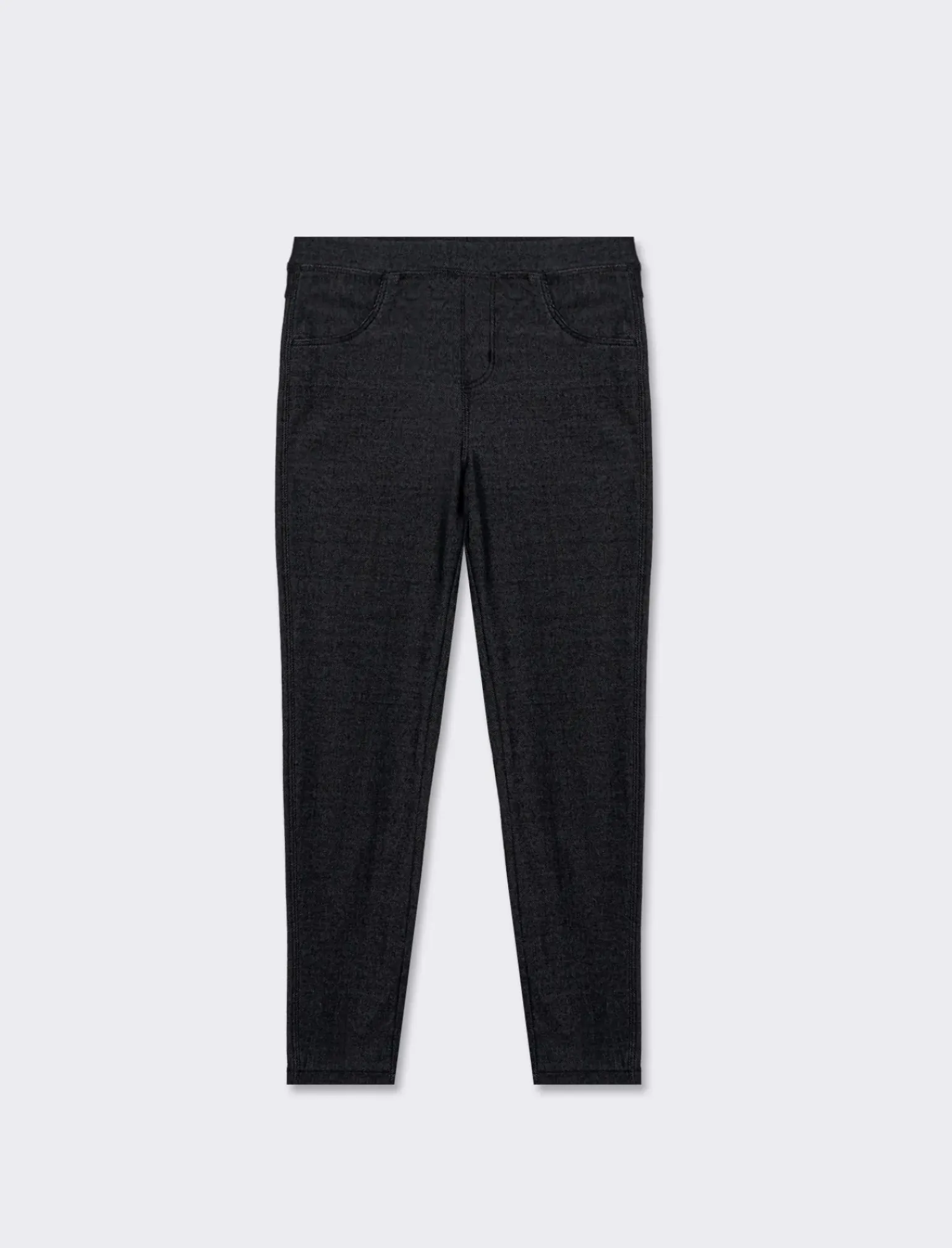 Leggings effetto denim elasticizzato per bambina, comodi e alla moda. Realizzati in morbido cotone elasticizzato, si adattano perfettamente al corpo dei più piccoli. Le cuciture a contrasto donano un tocco di originalità e stile. Ideali per un look casual e trendy, perfetti per ogni occasione. Il prodotto è di colore Nero
