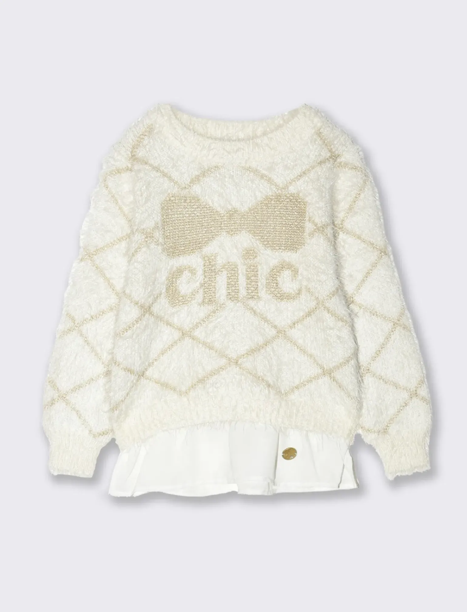 Il maglione con rouches per bambina è un capo d’abbigliamento elegante e trendy, realizzato in morbida maglia effetto pelo lungo. Il design presenta un affascinante motivo a rombi, arricchito da un delicato ricamo di paillettes che cattura la luce. Un charm decorativo al fondo aggiunge un tocco di originalità, mentre le rouches in crepe conferiscono un tocco romantico e giocoso. Il prodotto è di colore Bianco sporco