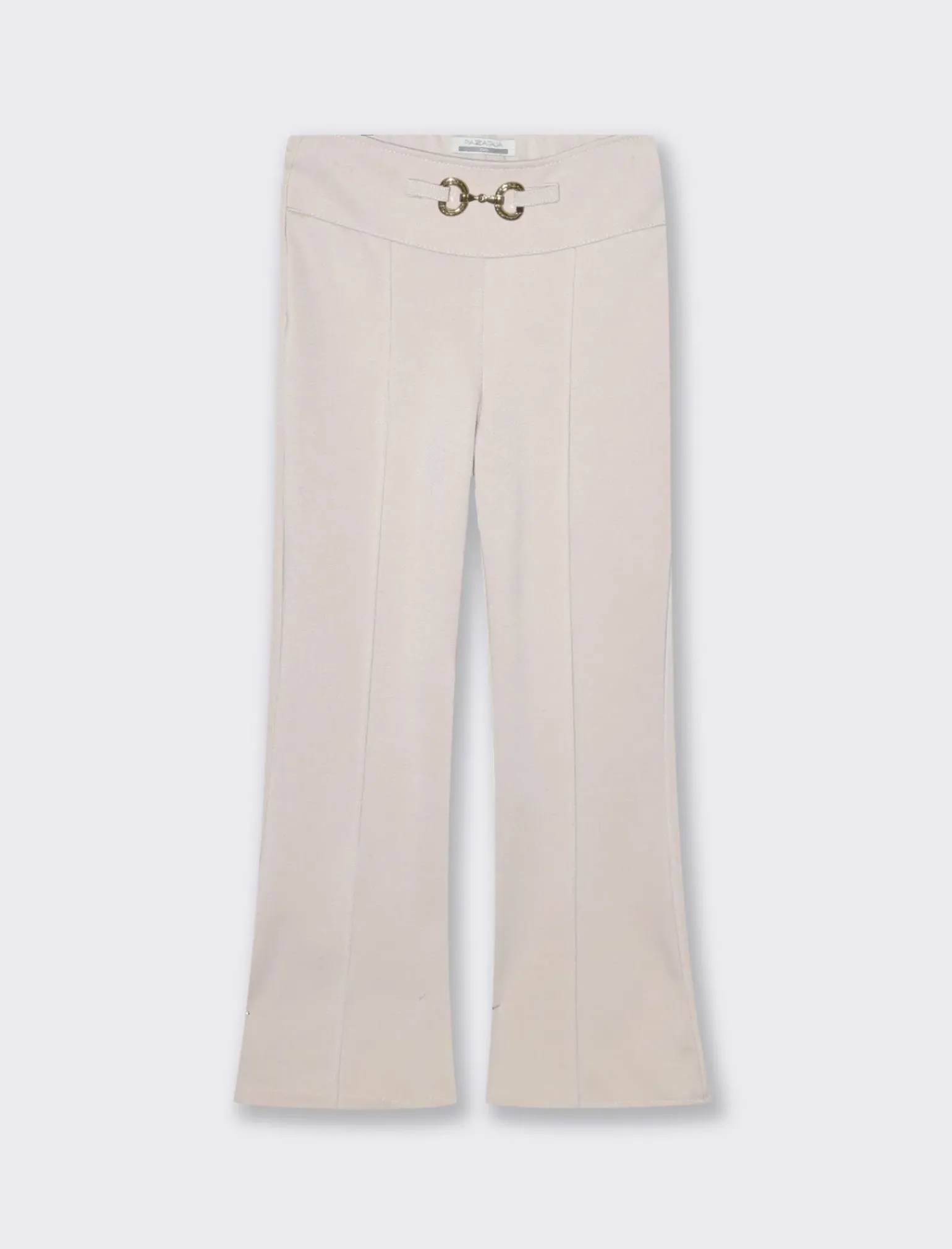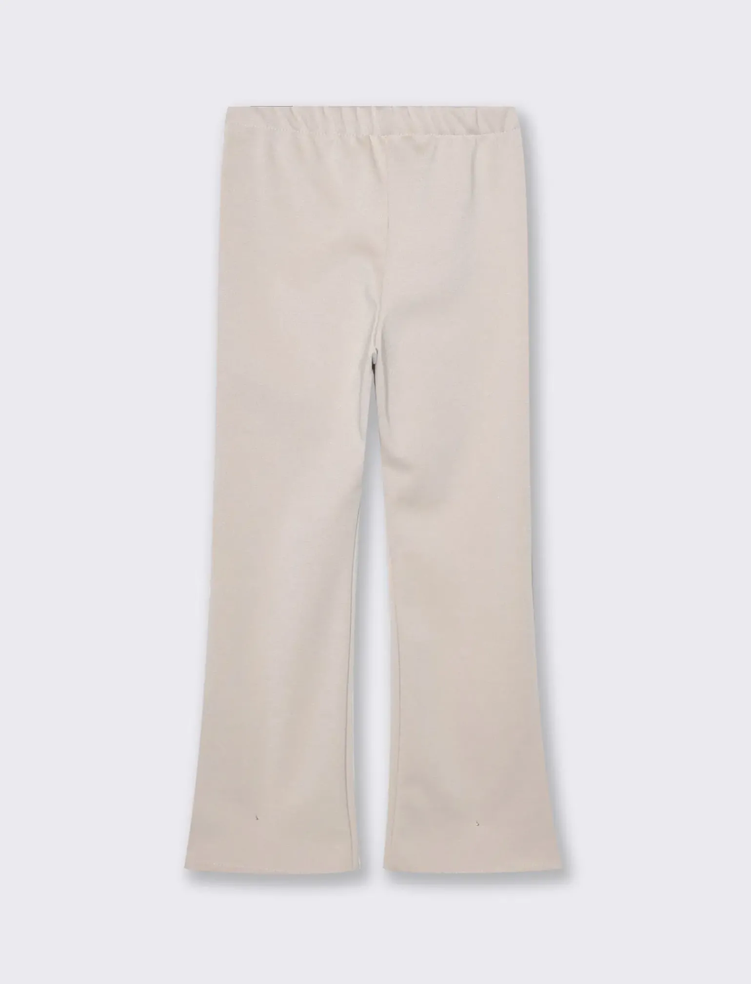 Leggings modello flare da bambina, con elastico sul dietro per un maggior comfort e accessorio decorativo sul davanti. Il prodotto è di colore Beige