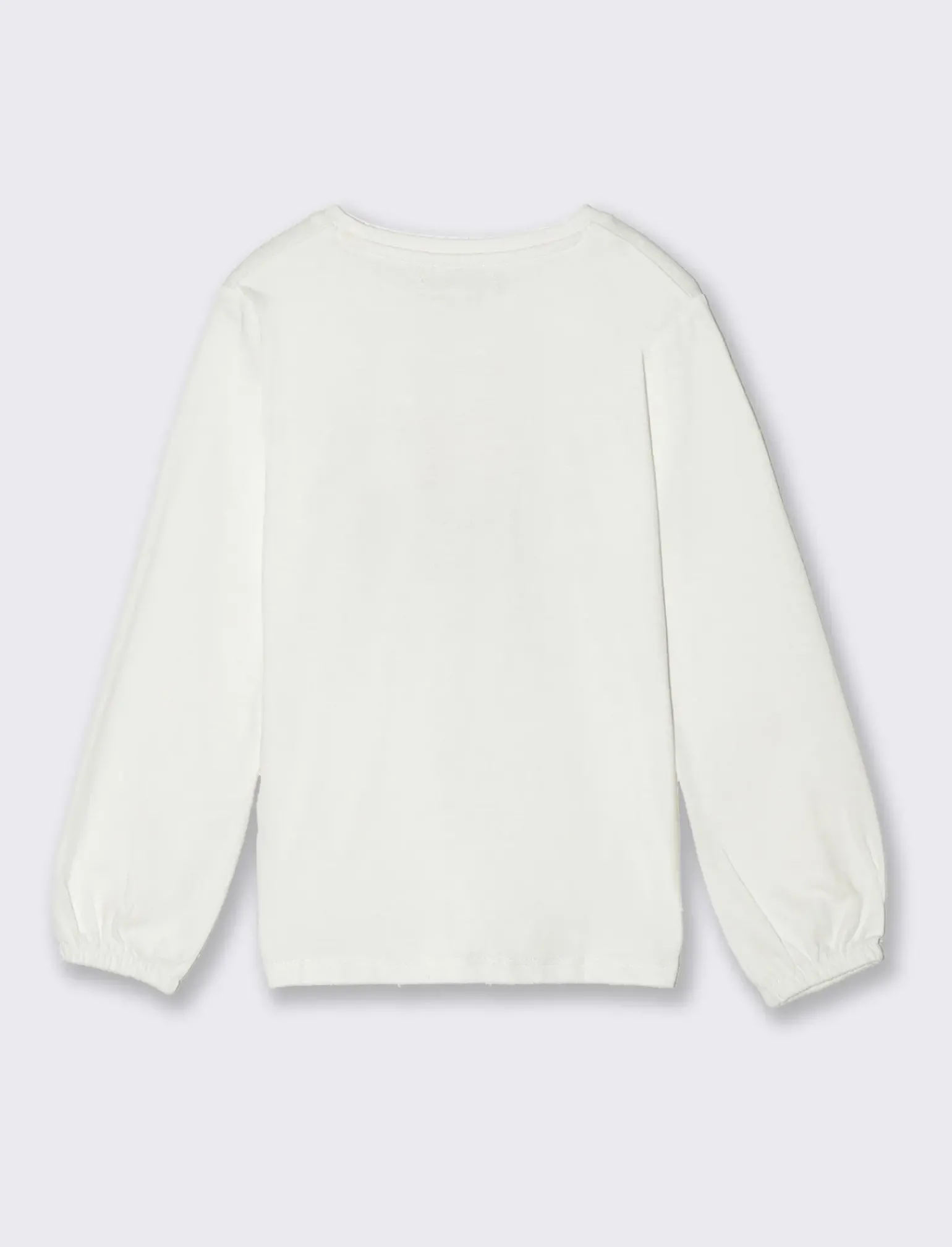 T-shirt girocollo da bambina maniche lunghe dalla vestibilità regolare; tessuto dalla mano calda e morbida con stampa e borchie Il prodotto è di colore Bianco sporco