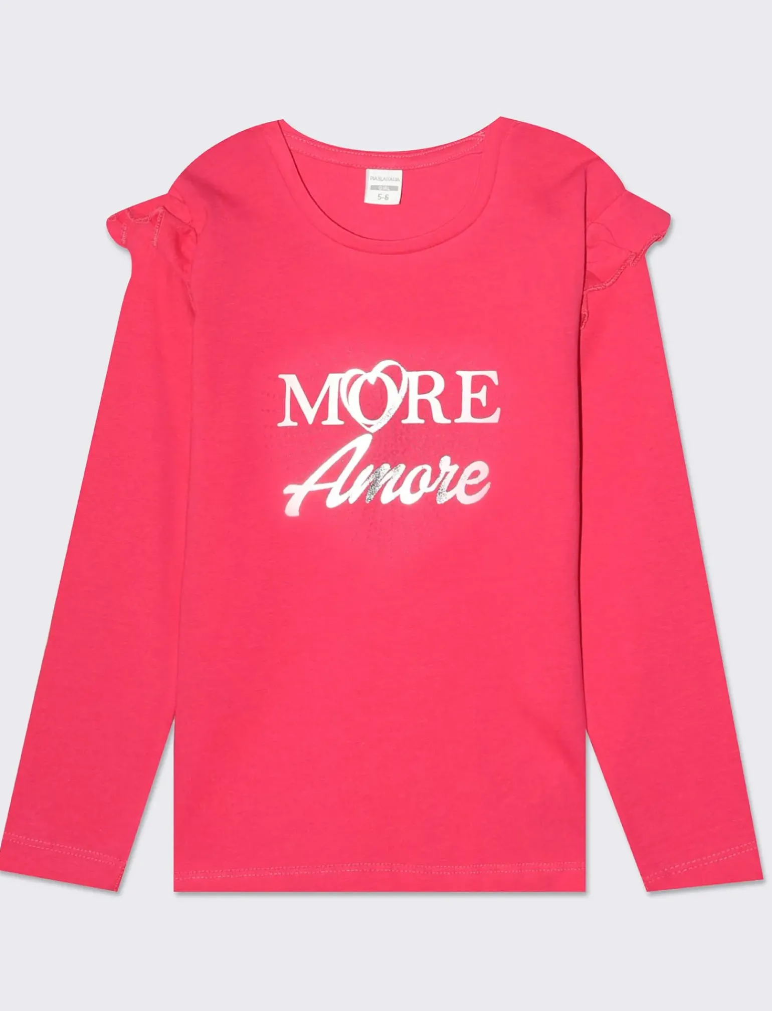 Piazza Italia Bambina|T-Shirt E Top<T-shirt manica lunga in cotone con rouches e stampa con dettagli effetto metallizzato –