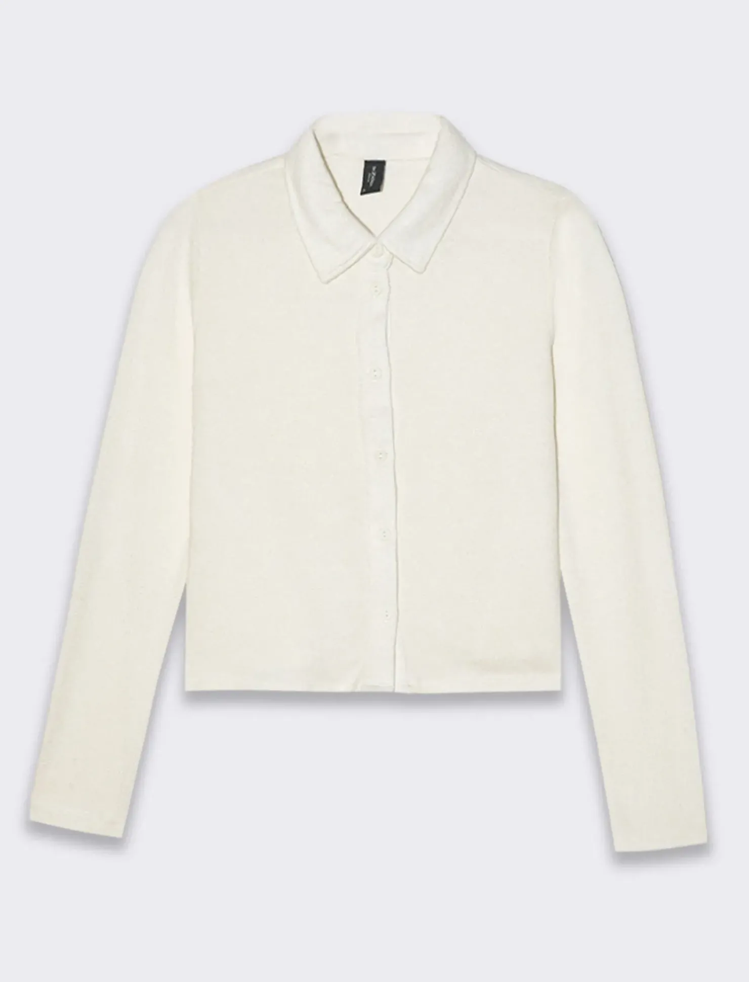 La camicia slim in maglina per donna è un capo versatile e di tendenza, realizzata in morbido tessuto tinta unita. Le maniche lunghe conferiscono un tocco di eleganza, rendendola ideale per diverse occasioni, dal lavoro agli eventi informali. La vestibilità slim esalta le forme femminili, assicurando comfort e stile. Perfetta da abbinare a jeans o gonne, questa camicia è un must-have nel guardaroba di ogni donna moderna. Il prodotto è di colore Avorio