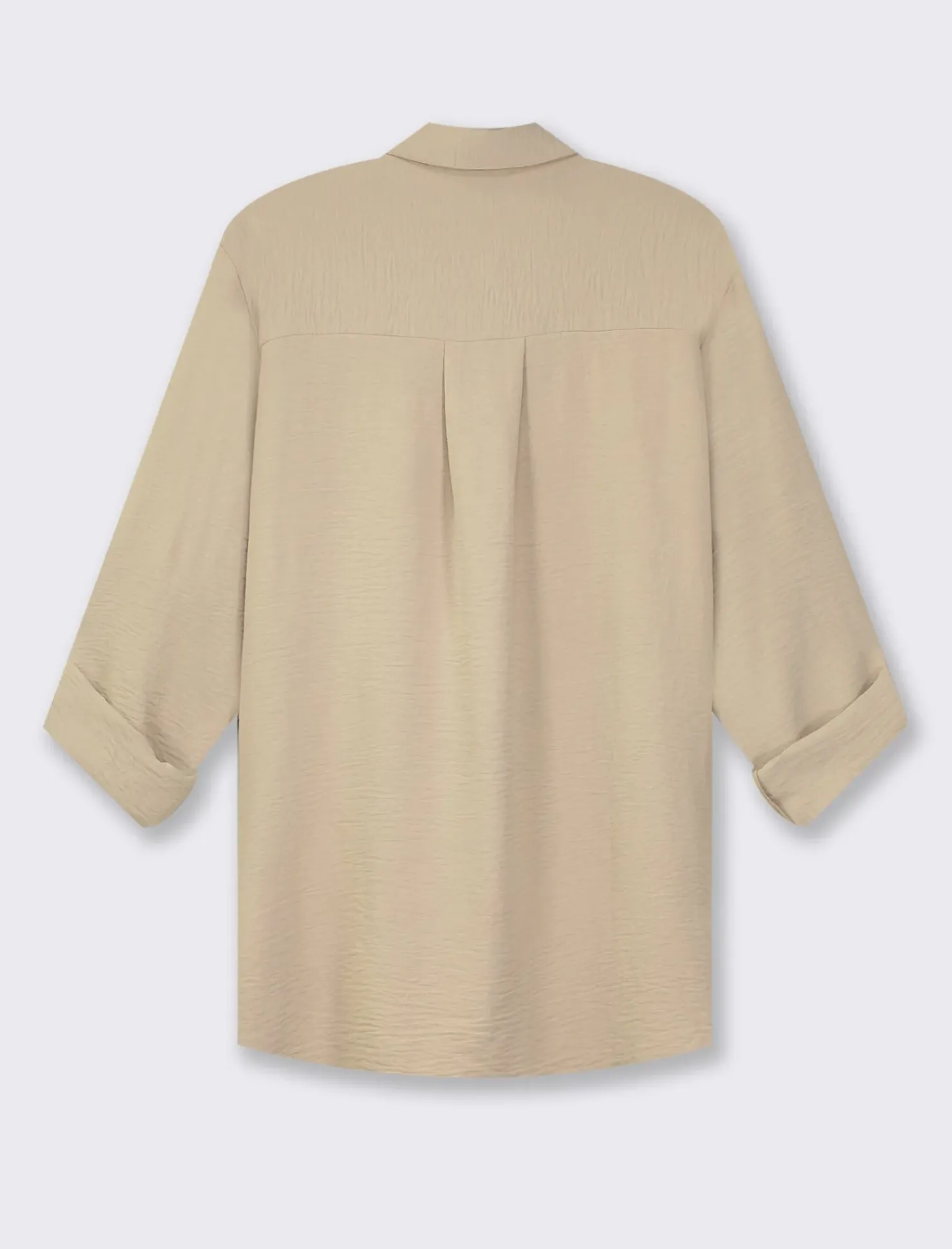 Camicia manica lunga donna in tessuto fluido, perfetta per un look casual ma curato. Il taglio moderno con spalla scesa e alette per risvoltare la manica conferisce un tocco di originalità. Disponibile in diverse tonalità, ideale per completare il tuo outfit in ogni occasione. Il prodotto è di colore Beige corda