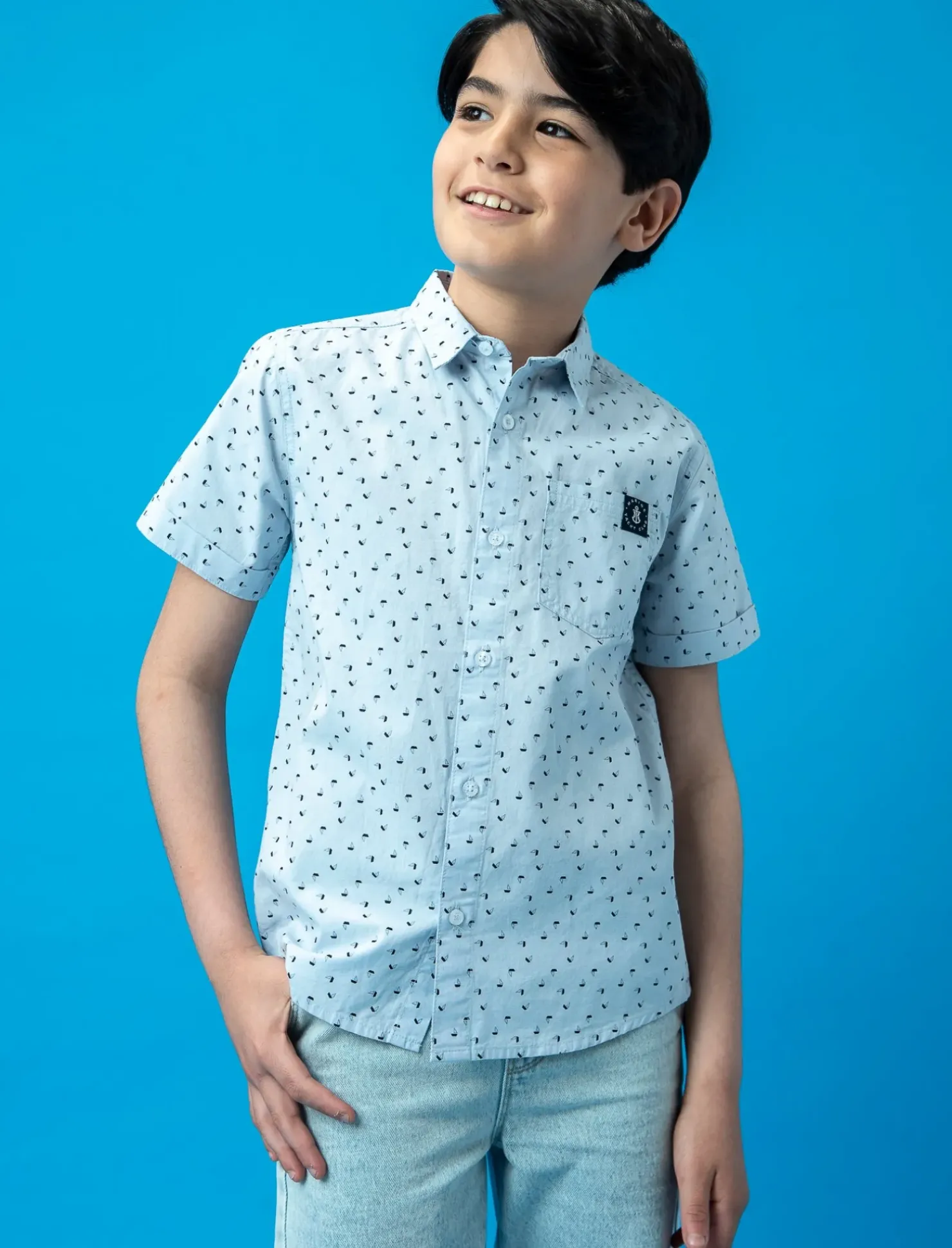 La camicia stampata mezza manica in cotone è perfetta per i bambini che vogliono essere alla moda e comodi. Questa camicia è disponibile in diverse varianti di colore, adatta a ogni stile e personalità. Il design stampato rende questa camicia unica e divertente, perfetta per ogni occasione. Aggiungi un tocco di stile al guardaroba dei tuoi piccoli con questa camicia stampata mezza manica in cotone. Il prodotto è di colore Celeste