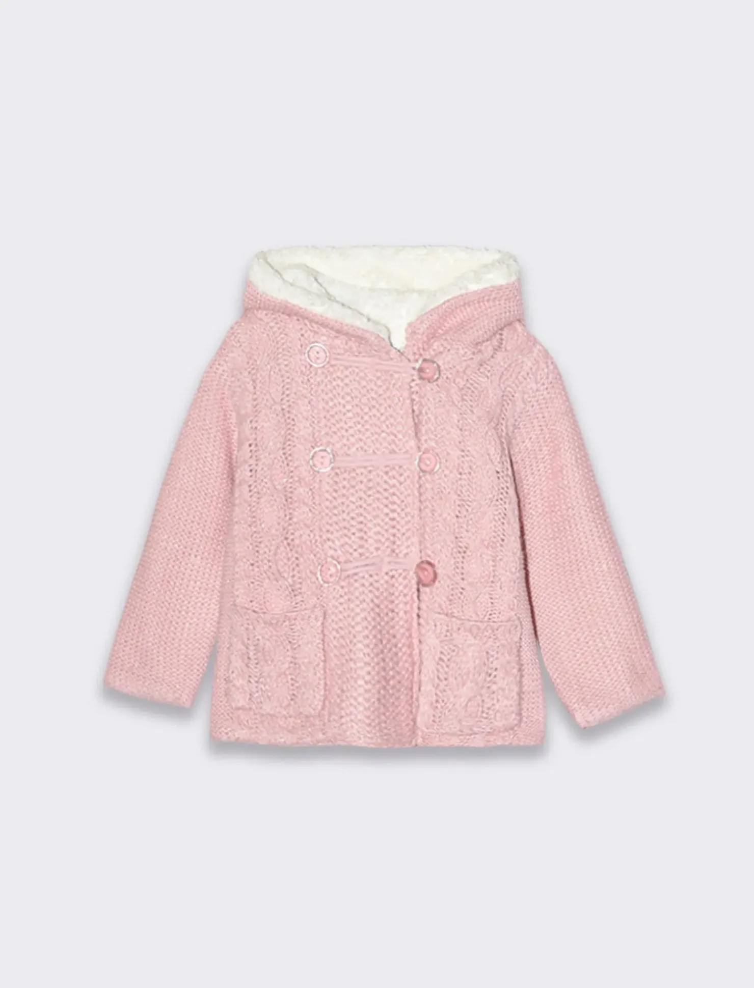 Piazza Italia Cardigan da neonata con cappuccio e bottoni con pelliccia interna – Lilla Viola Outlet