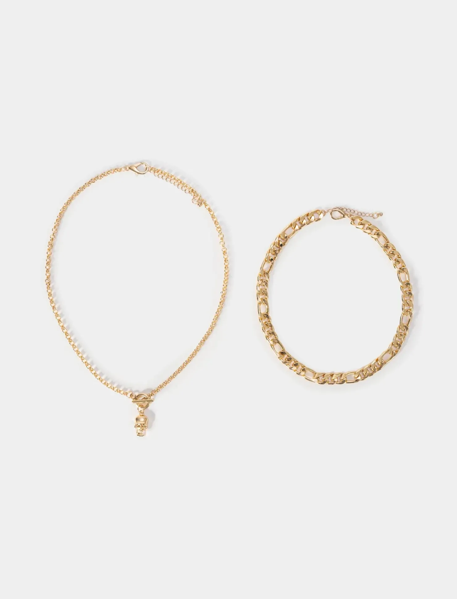 Piazza Italia Collana da uomo catena con teschio – Oro Cheap