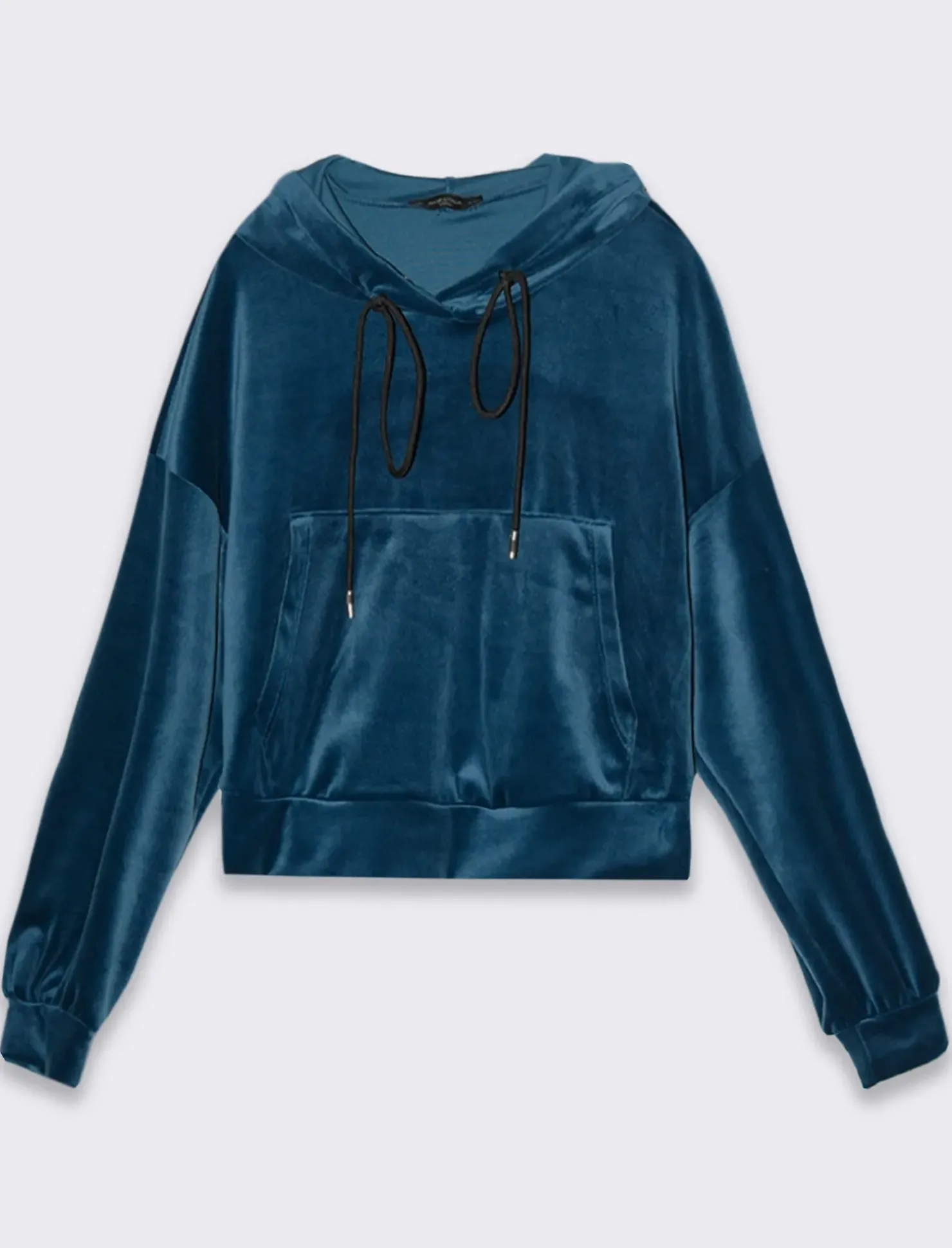 Questa felpa con cappuccio è realizzata in un tessuto morbido e accogliente, perfetto per le giornate più fresche. Il cappuccio è ampio e regolabile con un cordoncino, permettendoti di adattarlo alle tue esigenze e proteggerti dal vento.La tasca a marsupio sul davanti non è solo pratica, ma aggiunge anche un tocco casual e sportivo. La felpa ha una vestibilità rilassata, offrendo libertà di movimento e un look disinvolto.Le maniche sono lunghe e terminano con polsini elasticizzati, che aiutano a mantenere il calore all’interno. Il bordo inferiore della felpa è anch’esso elasticizzato, garantendo una vestibilità aderente ma confortevole. Il prodotto è di colore Ottanio