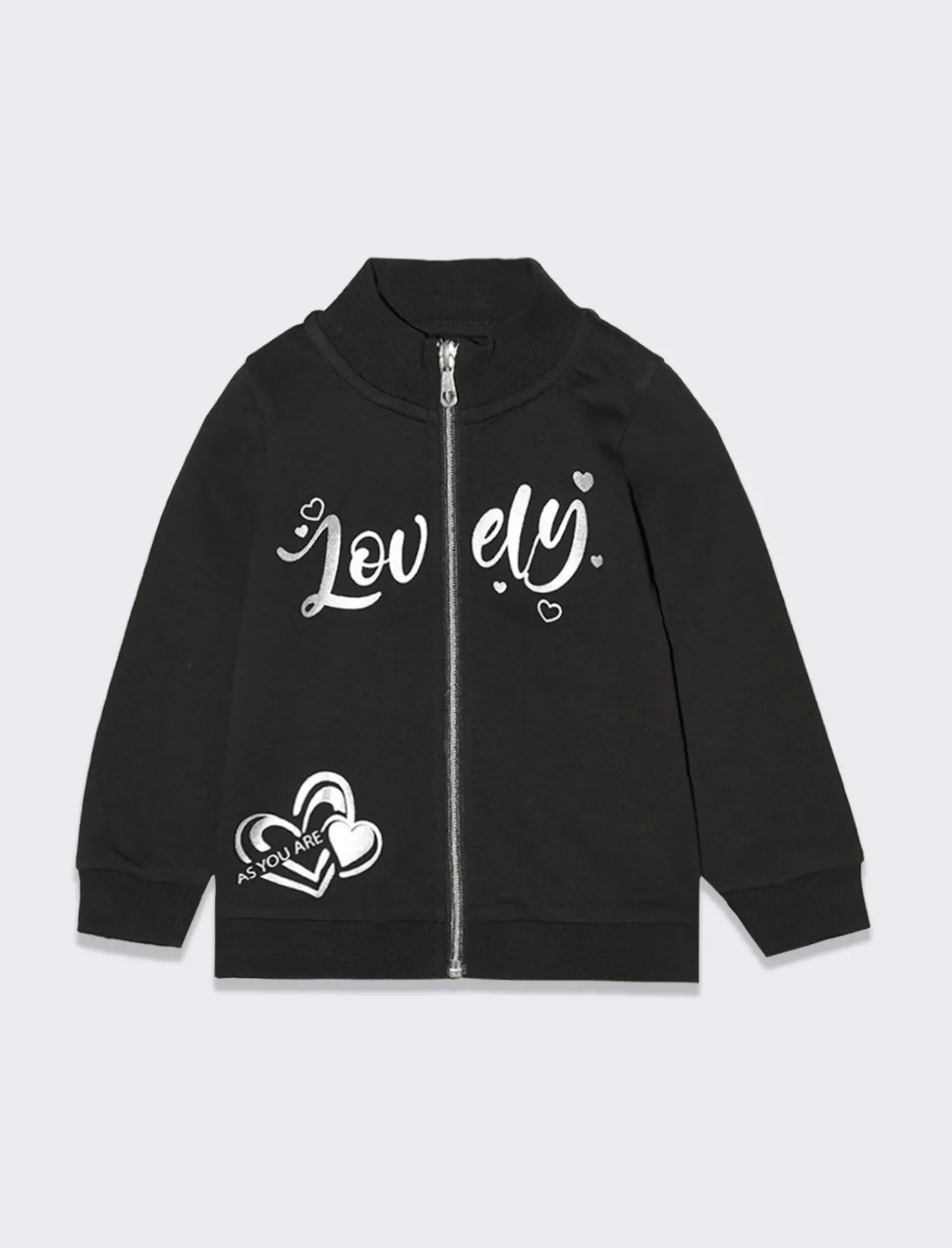 Piazza Italia Felpa con stampa frontale e apertura con zip – Nero Discount