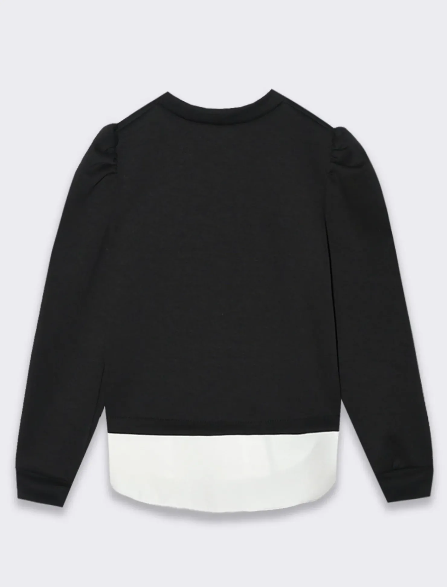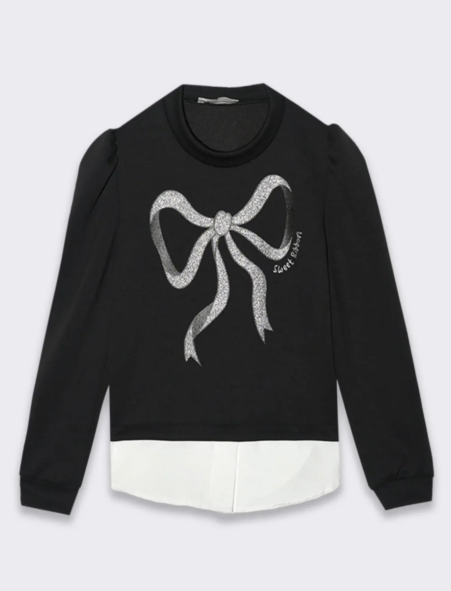Felpa girocollo da bambina realizzata in un tessuto elastico che garantisce comfort e libertà di movimento. La stampa brillante a forma di fiocco sulla parte anteriore aggiunge un tocco di dolcezza e luminosità, catturando l’attenzione con il suo scintillio. Il dettaglio della finta blusa sul fondo crea un effetto a strati elegante e raffinato, dando l’illusione di indossare due capi in uno. Questa felpa è perfetta per creare outfit adorabili e alla moda, ideale da abbinare a leggings o jeans per un look casual ma curato. Puoi completare l’outfit con accessori colorati e scarpe comode per un risultato pratico e stiloso, perfetto per ogni occasione. Il prodotto è di colore Nero