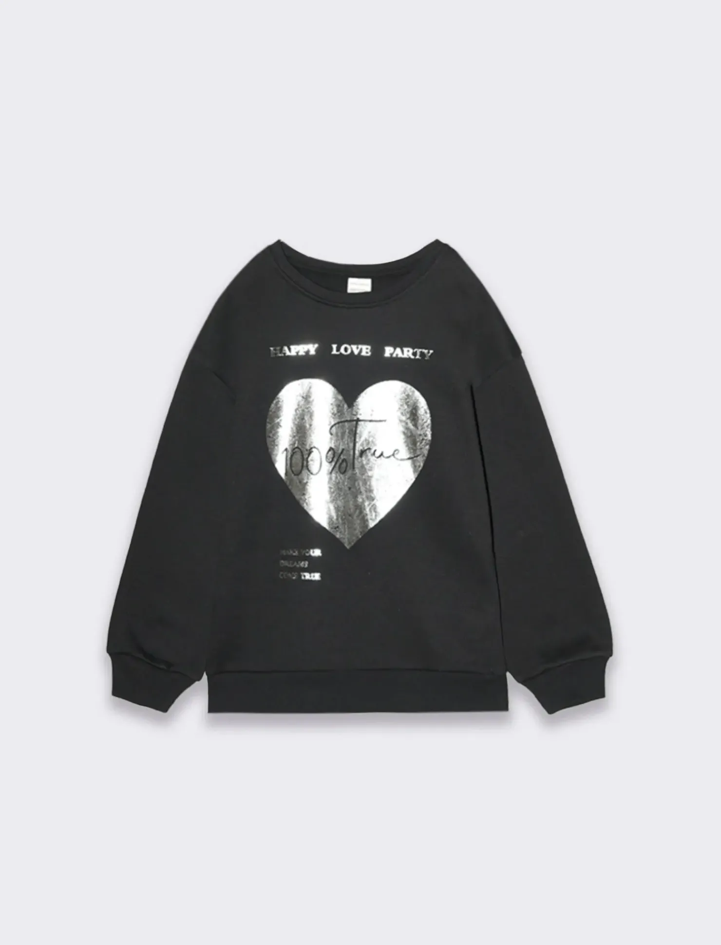 Felpa con stampa effetto metallico da bambina: un capo trendy e comodo per le giornate più fresche. Realizzata in morbido policotone, con costina al fondo e ai polsini, assicura una vestibilità regolare e confortevole. La stampa effetto metallico aggiunge un tocco di originalità e stile al look della tua piccola fashionista. Il prodotto è di colore Nero