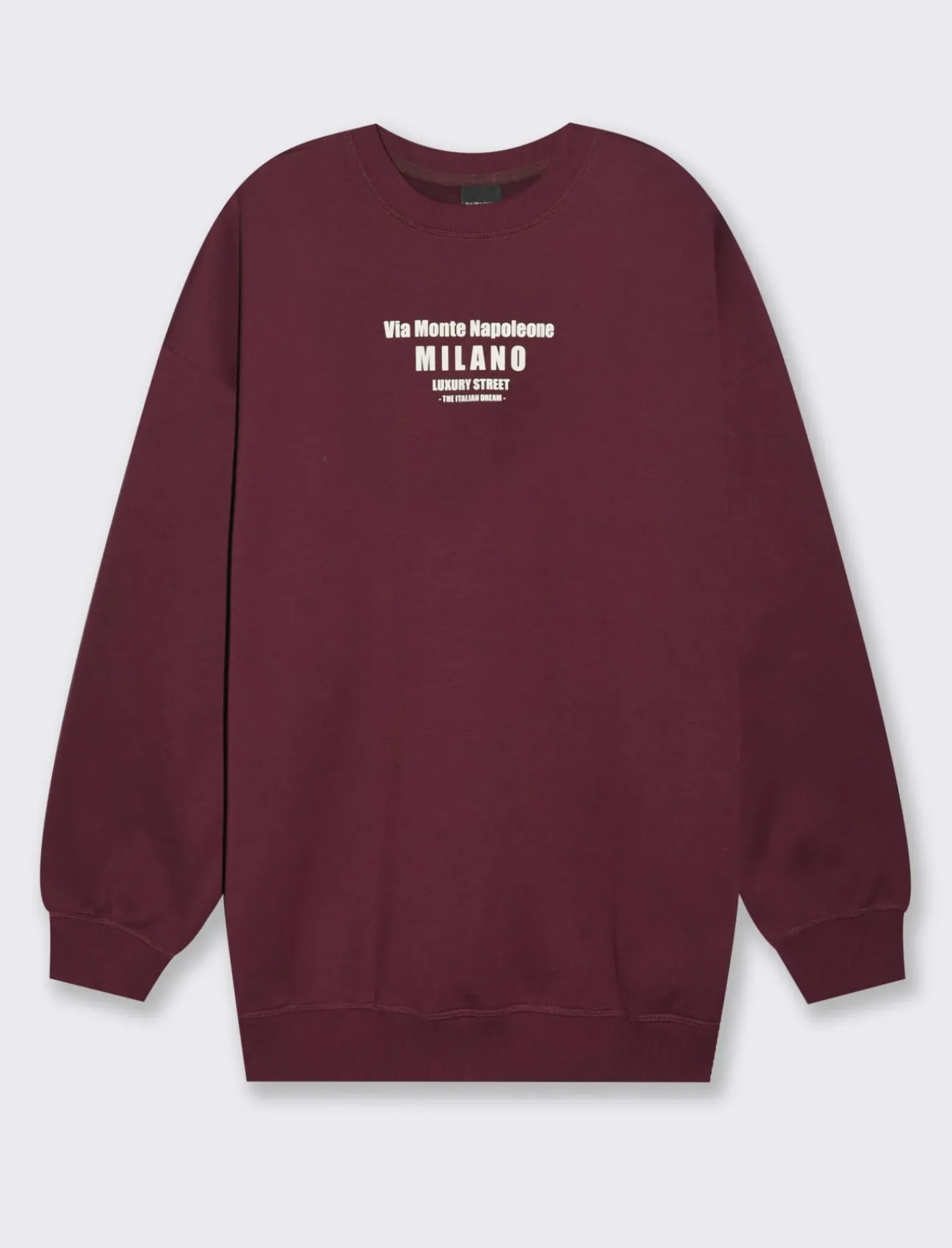 Piazza Italia Felpa oversize a girocollo con stampa frontale – Lampone Rosso Outlet