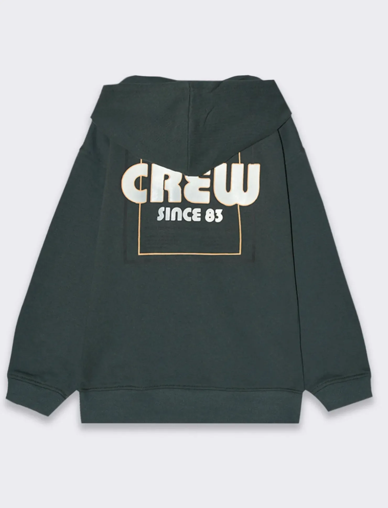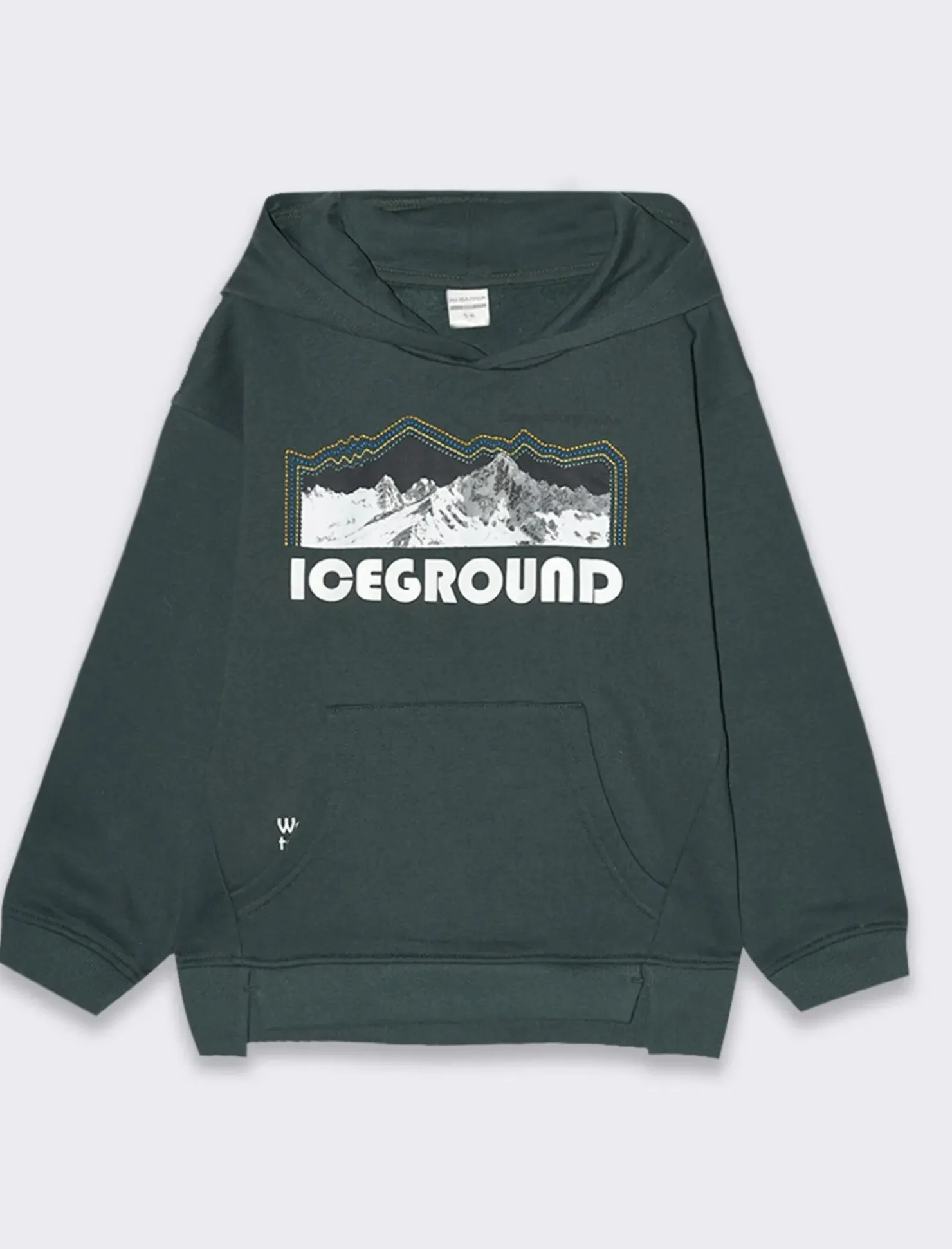 Felpa garzata da bambino modello con cappuccio. Vestibilità oversize. Tascone frontale. Fondo maniche e corpo in costina. Stampa e ricamo ftontale. Stile fashion, ideale per le uscite tra amici. Il prodotto è di colore Verde