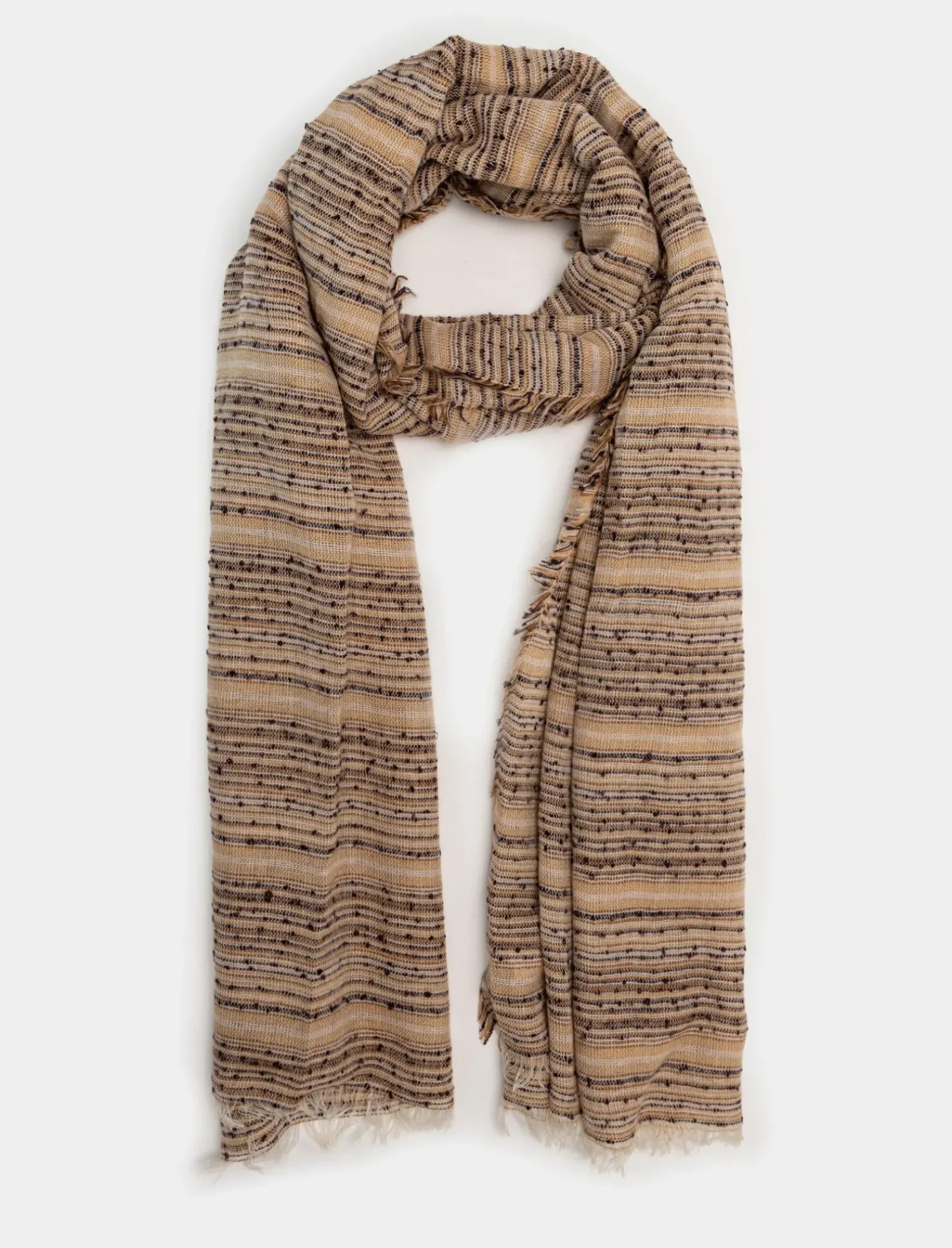 Foulard duomo a righe, un accessorio versatile e di tendenza per completare il tuo look con stile. Realizzato con materiali di alta qualità, questo foulard aggiungerà un tocco di classe e originalità al tuo outfit. Il prodotto è di colore Beige