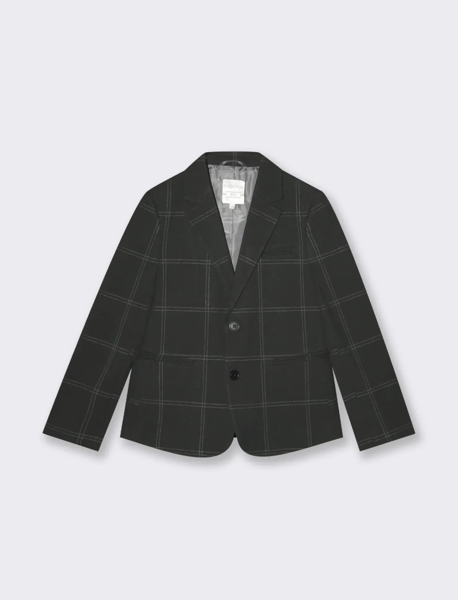 Giacca da bambino elegante, due bottoni, con fantasia a quadri , per completare al meglio il tuo look elegante per le grandi occasioni. Il prodotto è di colore Nero