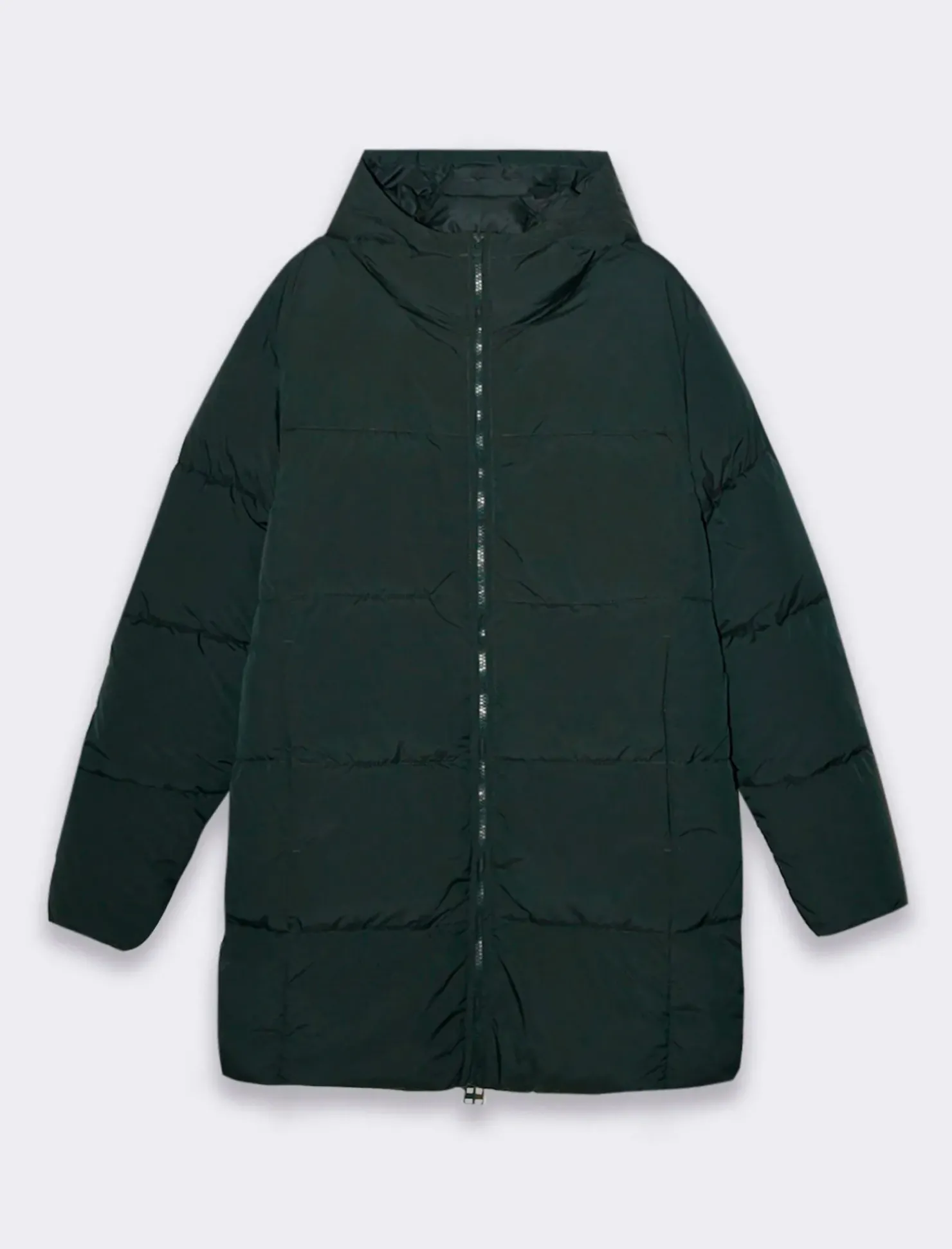 Piazza Italia Giaccone lungo realizzato in tessuto tecnico imbottito con cappuccio – Verde Clearance