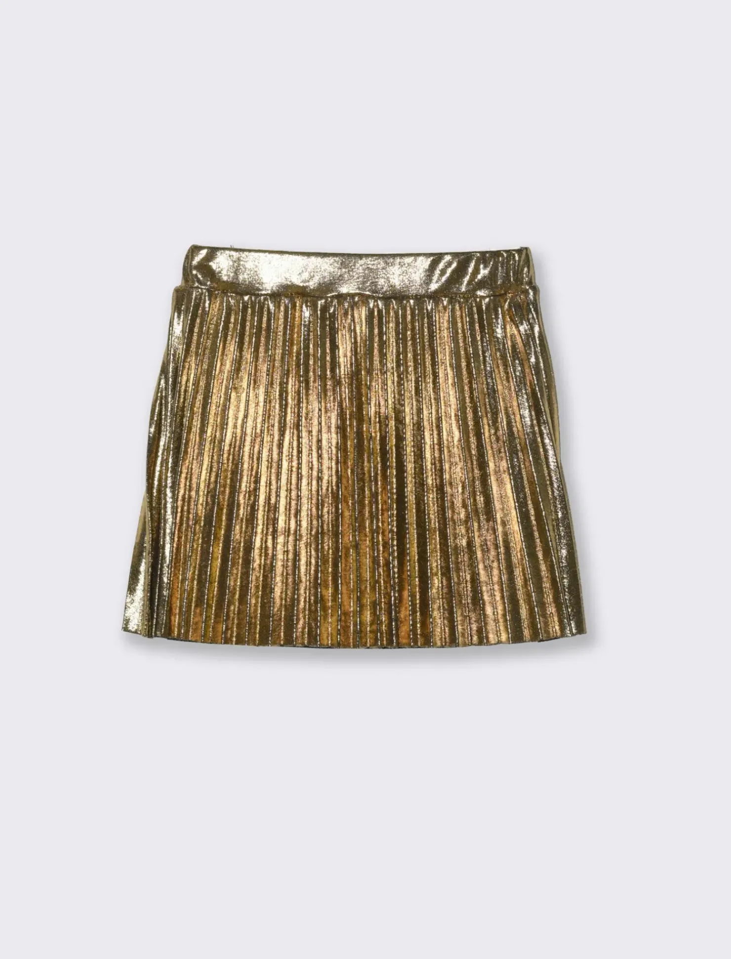 Gonna corta in tessuto elastico laminato effetto plissè per un look sparkling Il prodotto è di colore Oro