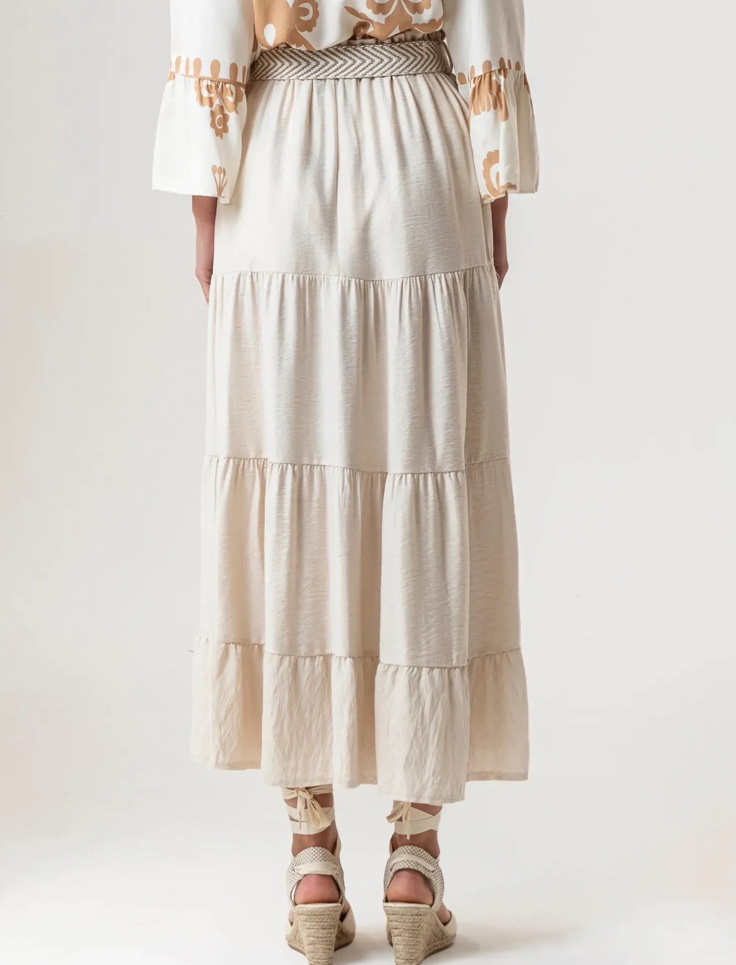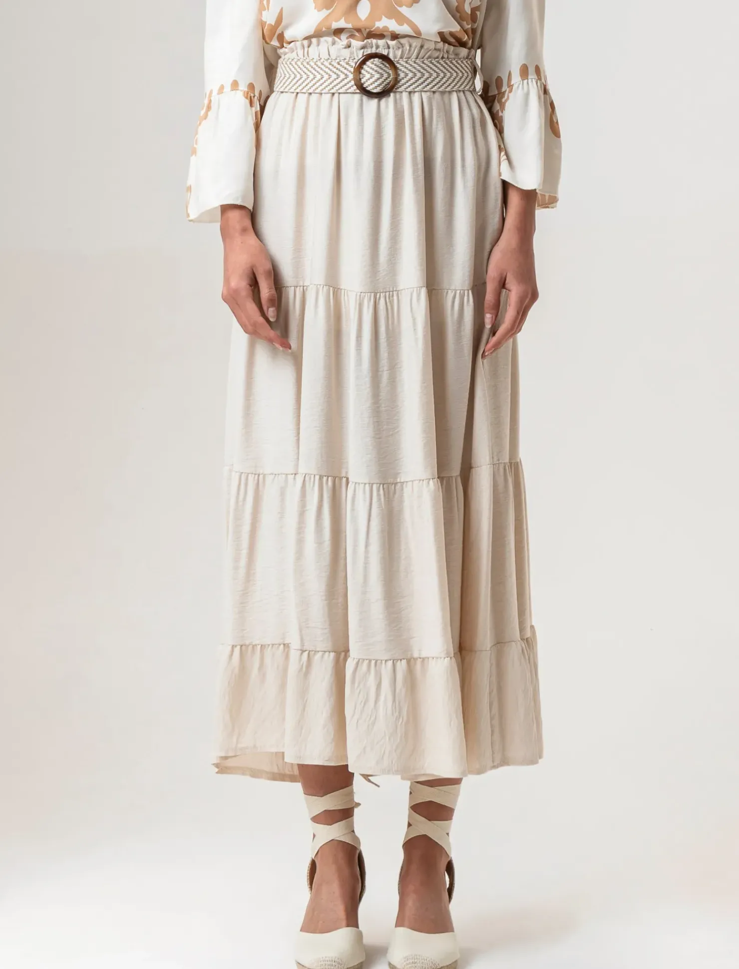 Piazza Italia Gonna viscosa a balze con elastico in vita e cintura – Beige Sale