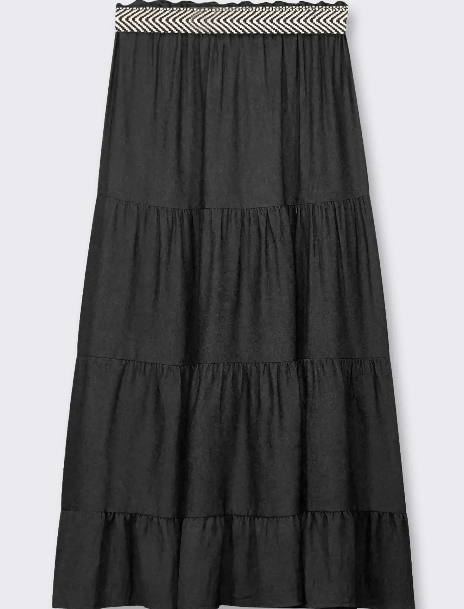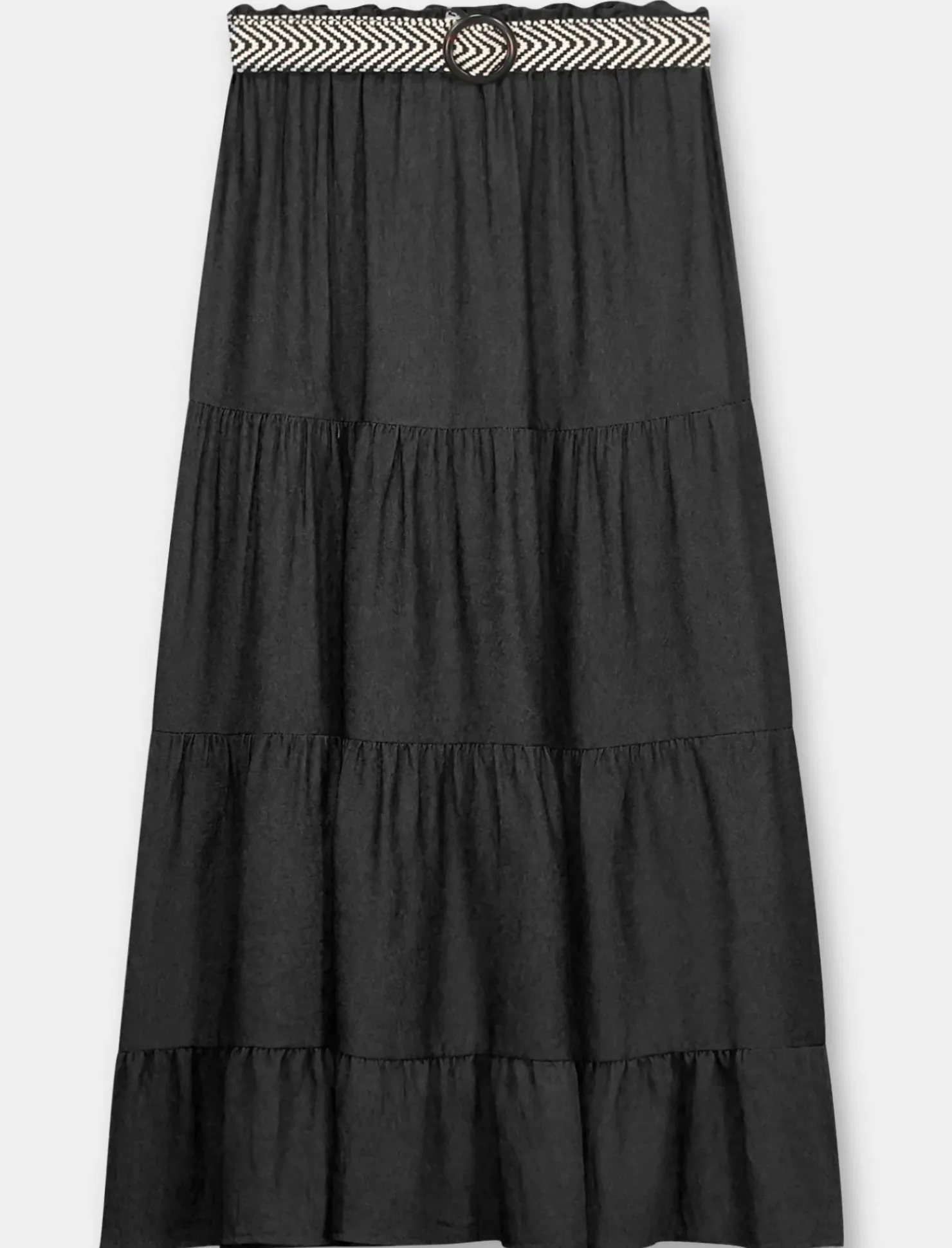 Piazza Italia Gonna viscosa a balze con elastico in vita e cintura – Nero Fashion