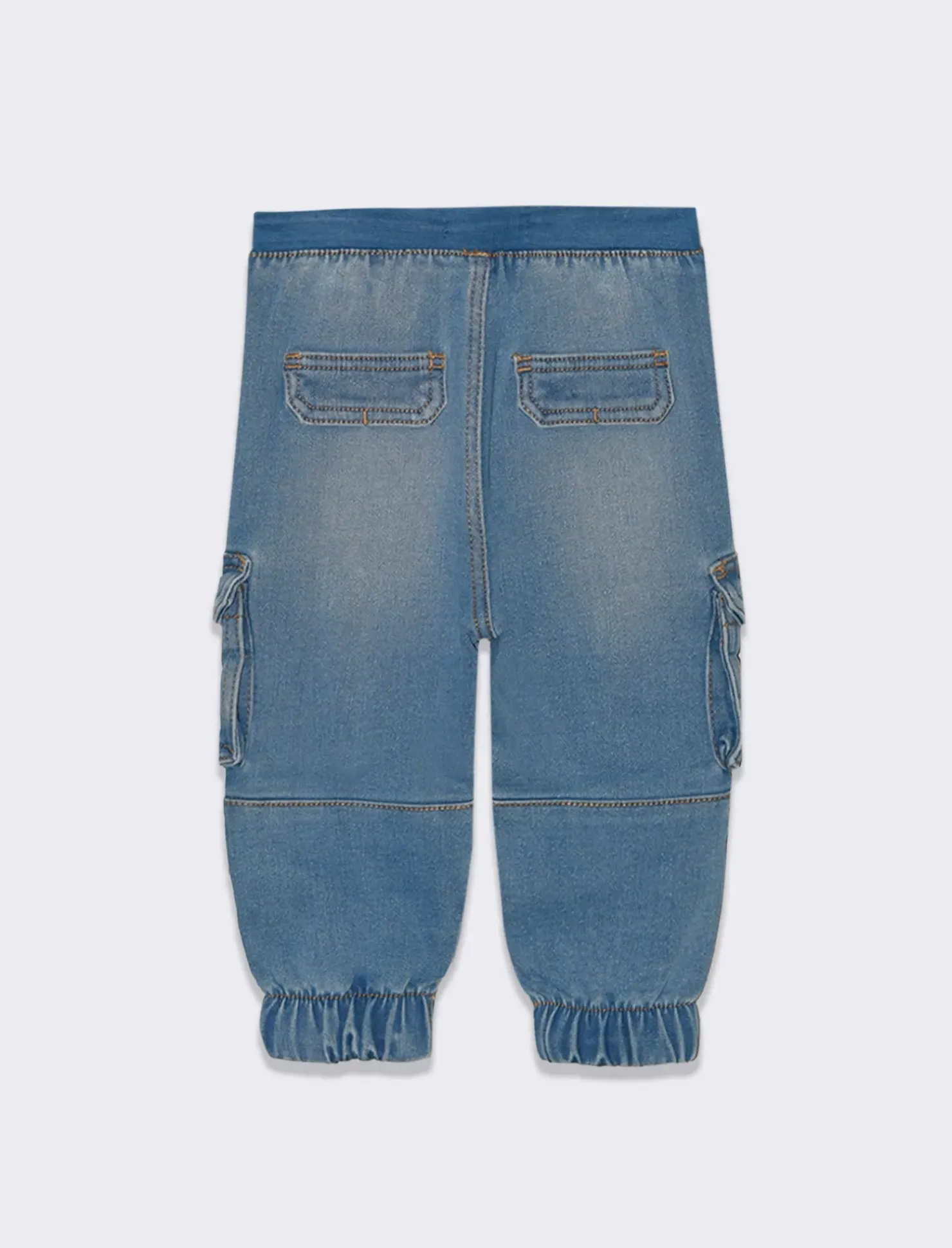 I jeans modello cargo con elastico al fondo gamba, costina e lacci in vita sono una scelta pratica e stilosa per il tempo libero. Le tasche laterali tipiche dei cargo sono non solo pratiche per portare piccoli oggetti, ma anche aggiungono un tocco di stile.Per un look casual, puoi abbinarli a una t-shirt o a una felpa, e completare con sneakers o stivaletti. Il prodotto è di colore Denim chiaro