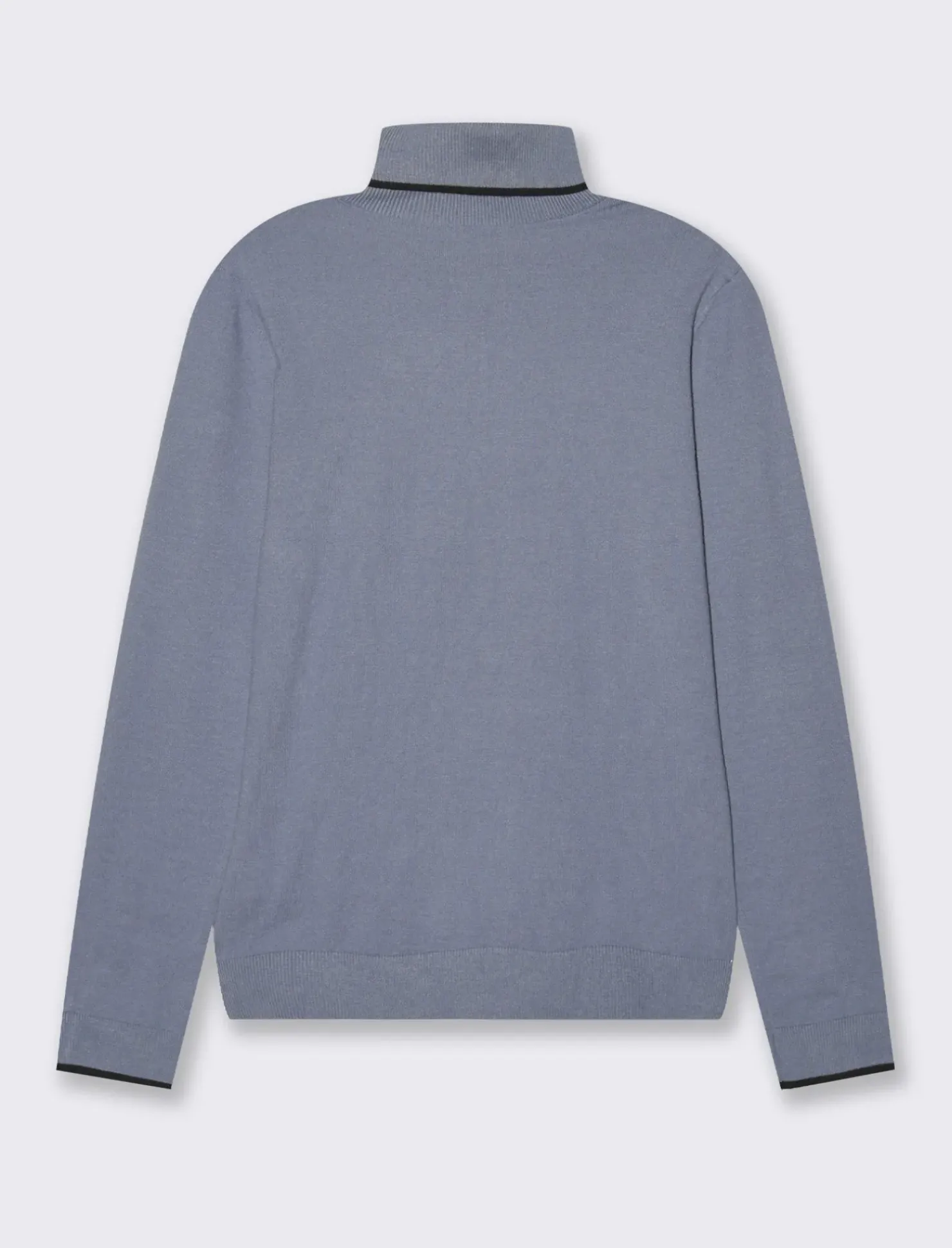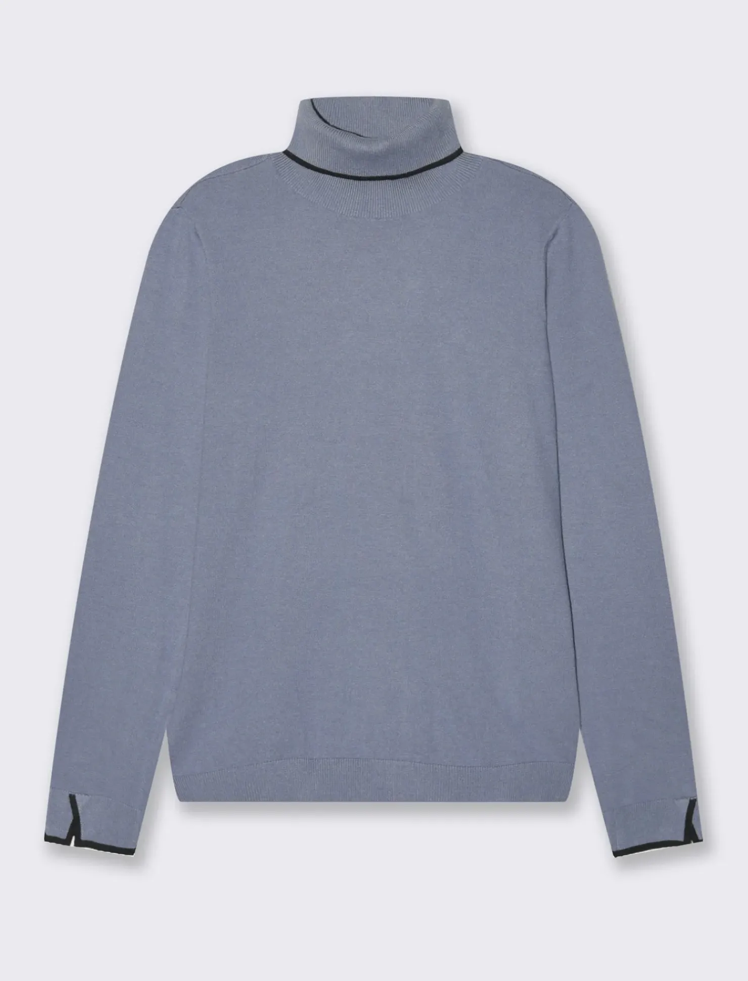 Piazza Italia Maglia a collo alto con dettaglio a contrasto su collo e polsini – Celeste Azzurro Best Sale
