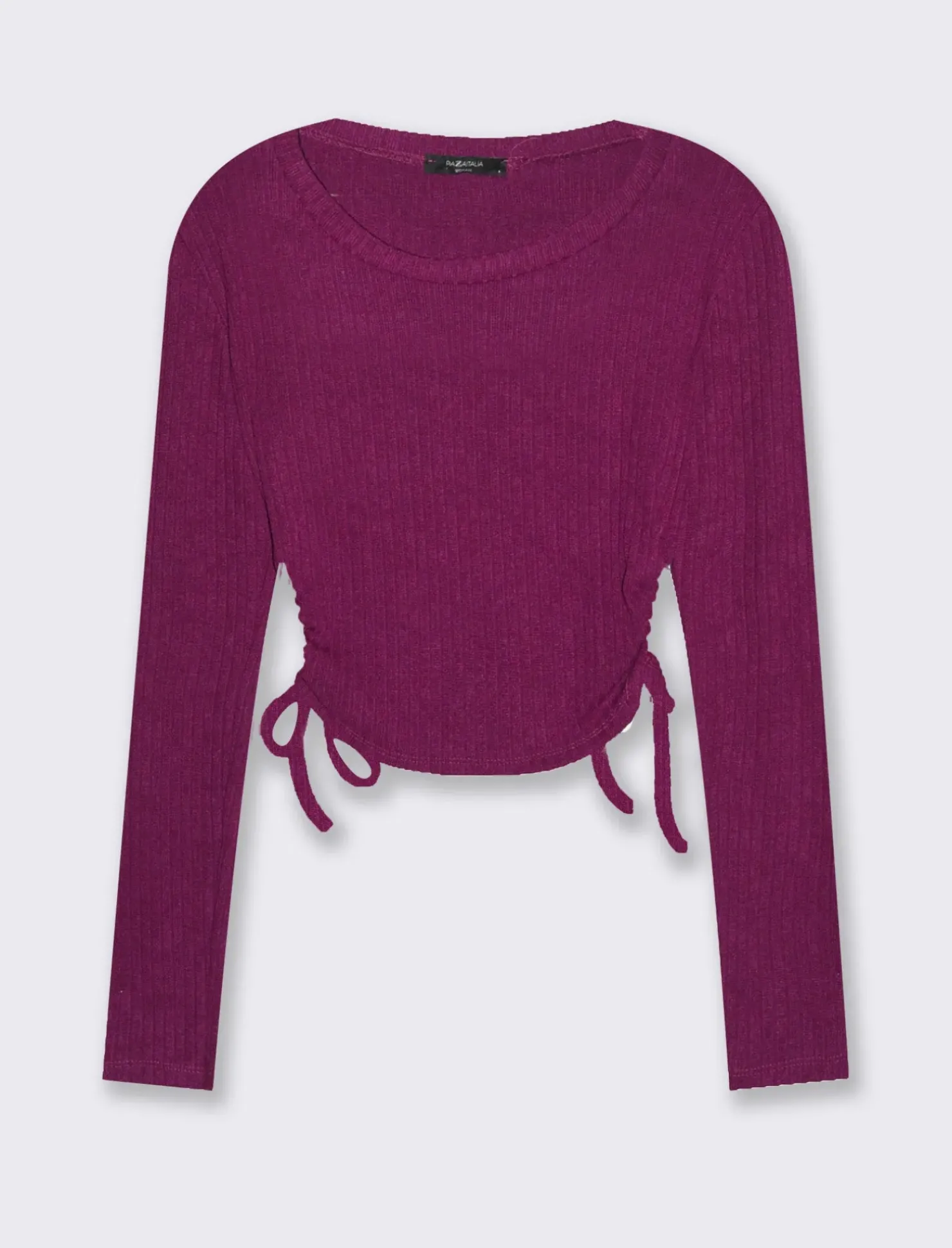Maglia a coste con arricci sul fianco Il prodotto è di colore Vinaccia