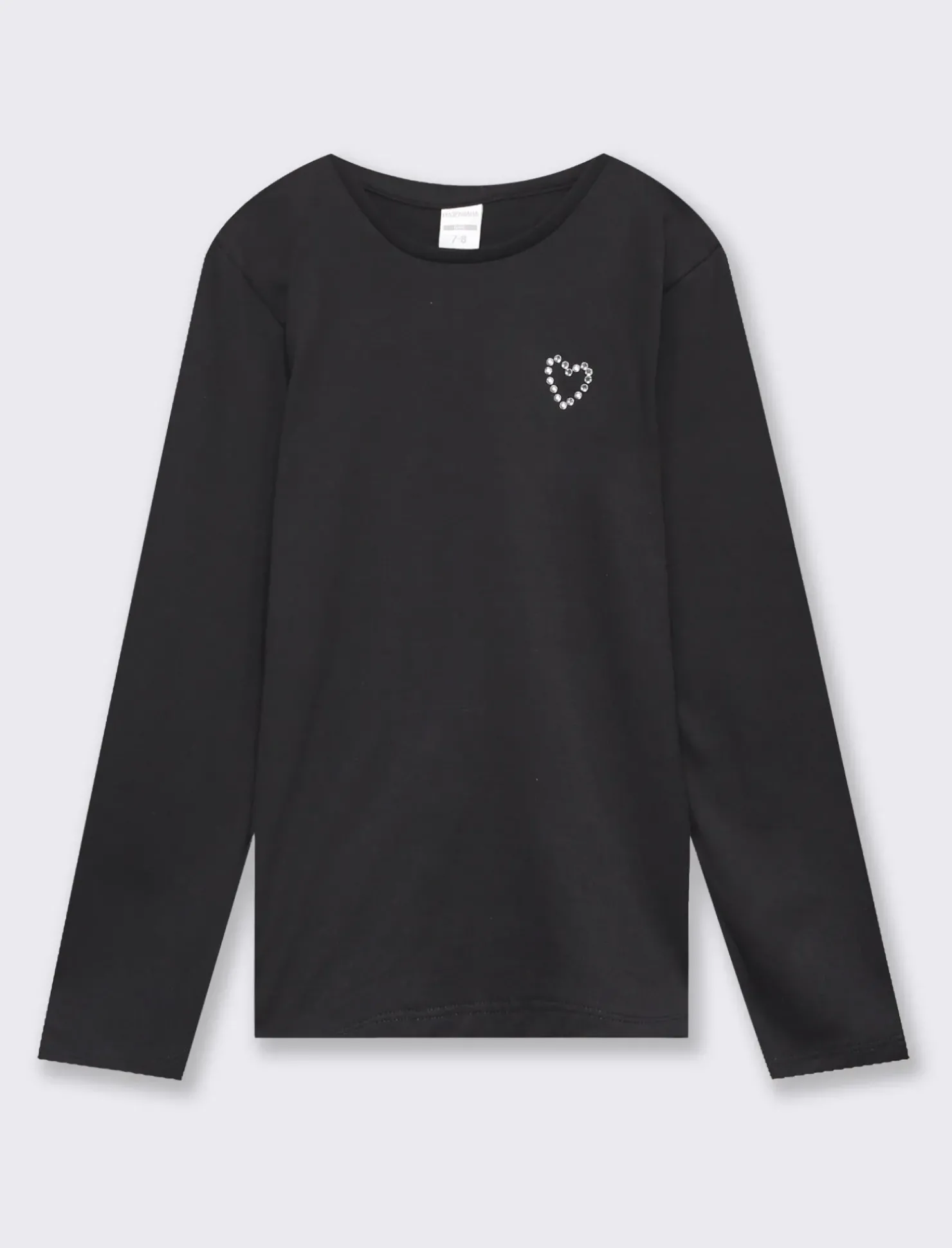 Piazza Italia Maglia a manica lunga in cotone con applicazioni strass – Nero Fashion