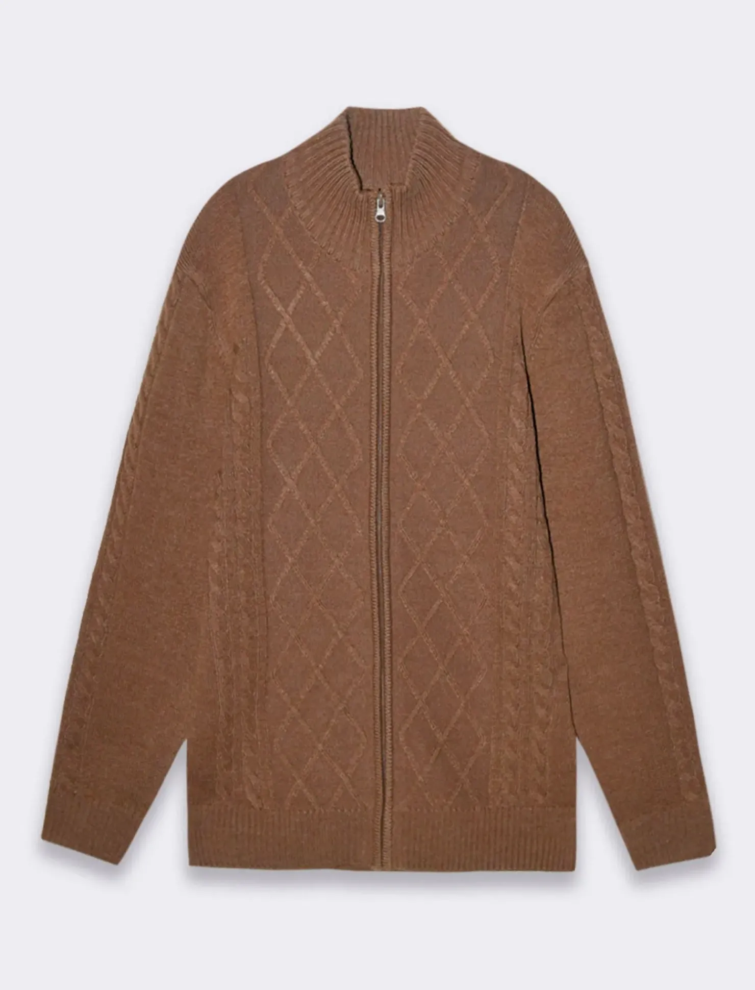 Maglia cardigan in pregiato jacquard, ideale per l’uomo che cerca comfort e stile. La sua vestibilità regolare garantisce una silhouette elegante, mentre la costina al collo, ai polsi e al fondo conferisce un tocco di raffinatezza. La chiusura frontale con cerniera permette di indossarlo facilmente, rendendolo perfetto per le giornate più fresche. Un capo versatile, adatto a molteplici occasioni, dal casual al formale. Il prodotto è di colore Grigio fango