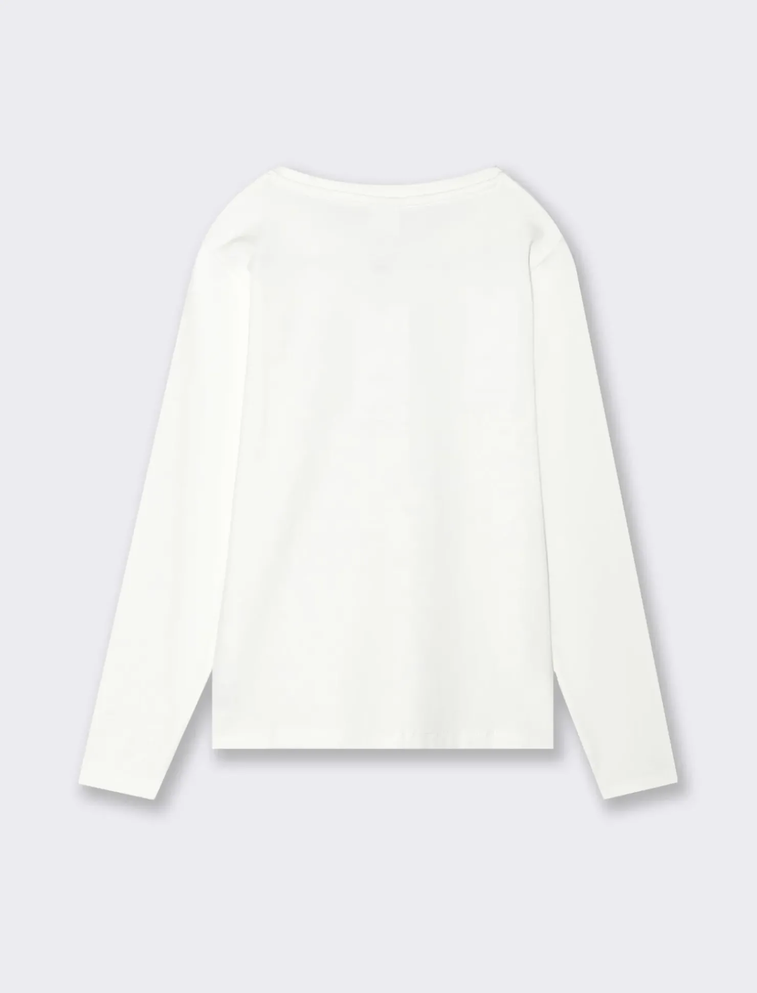 Maglia manica lunga in jersey per bambina, perfetta per un look casual e alla moda. Con un’originale applicazione e stampa sul davanti, questa maglia renderà unica la mise della tua piccola fashionista. Realizzata con materiali di alta qualità, garantisce comfort e resistenza per ogni avventura quotidiana. Il prodotto è di colore Bianco sporco