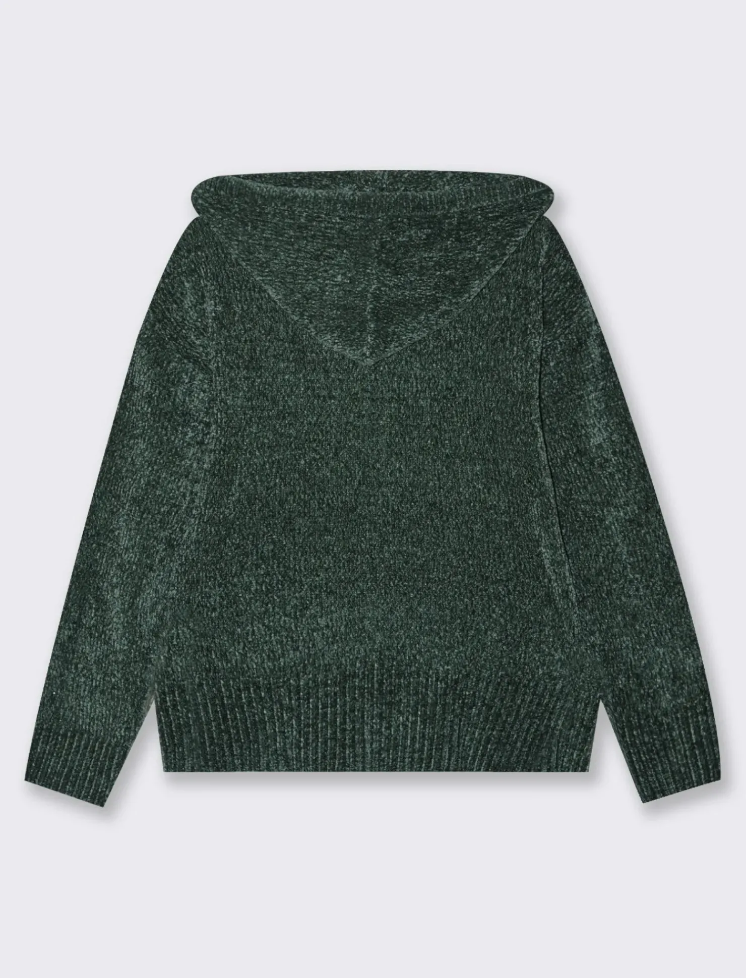 Maglia modello felpa in ciniglia per donna, un capo d’abbigliamento che unisce comfort e stile. Caratterizzata da un morbido tessuto in ciniglia, offre una sensazione di calore e avvolgenza. Il cappuccio aggiunge un tocco di praticità, mentre le tasche a marsupio sono perfette per riporre piccoli oggetti. I polsi e il fondo a costa elastica garantiscono una vestibilità confortevole e una silhouette elegante. Il prodotto è di colore Verde scuro