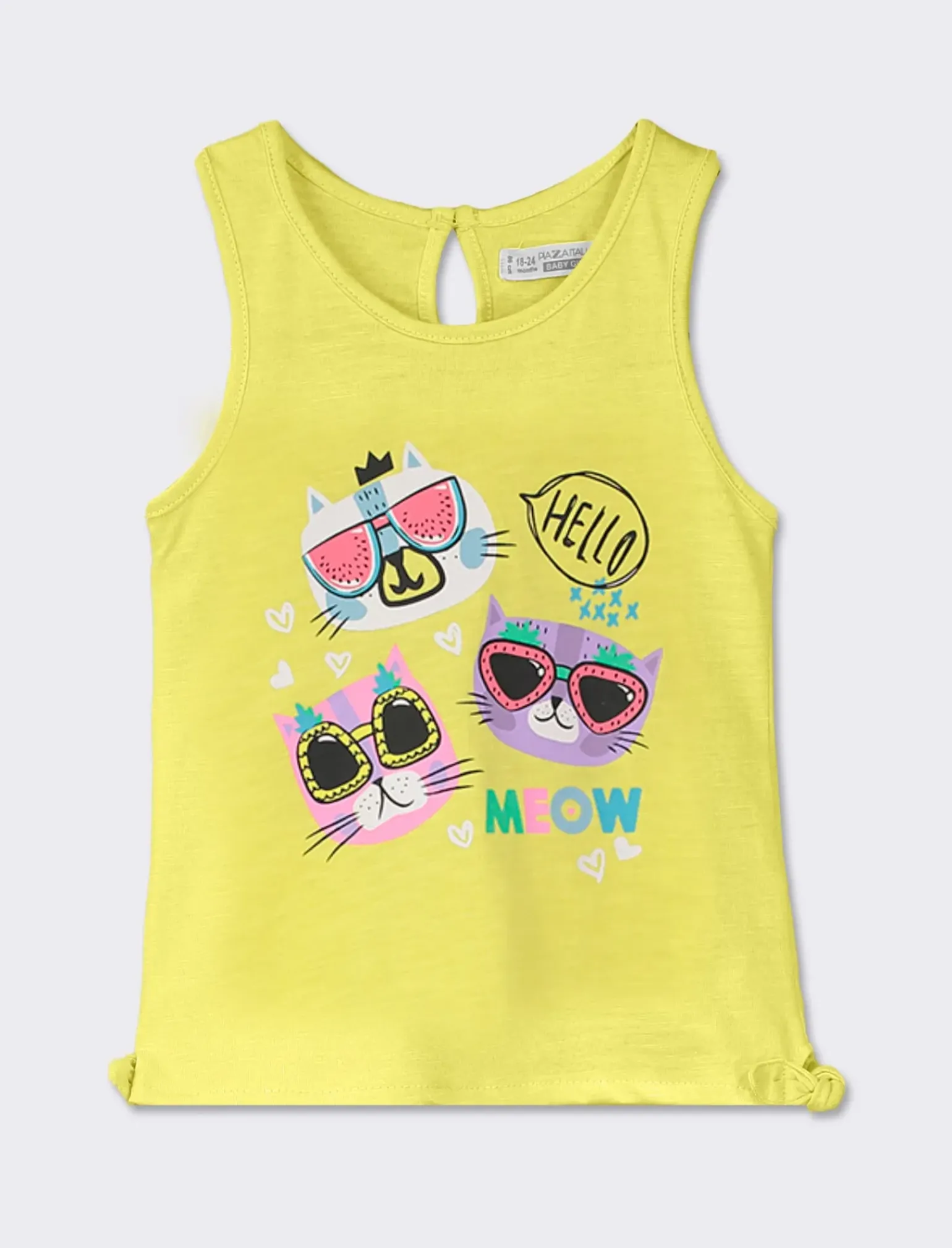 La canotta girocollo smanicata con stampa frontale è il capo perfetto per i bambini che amano essere alla moda e comodi allo stesso tempo. Realizzata in morbido cotone, questa canotta è disponibile in due varianti di colori vivaci, perfette per l’estate. La stampa frontale aggiunge un tocco di originalità e stile. Il prodotto è di colore Giallo