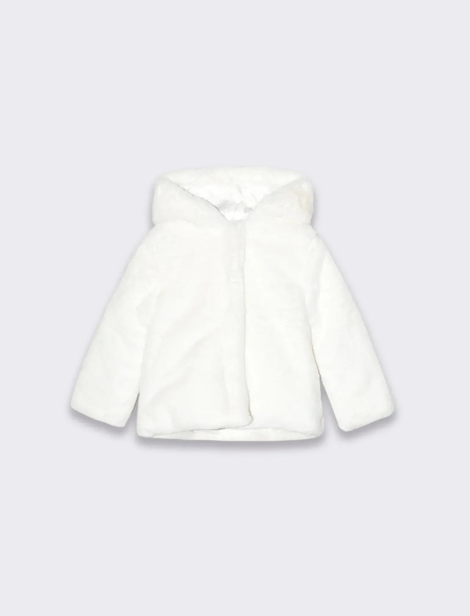 Piazza Italia Neonata<Giaccone in pelliccia, con cappuccio e piccole orecchie applicate – panna