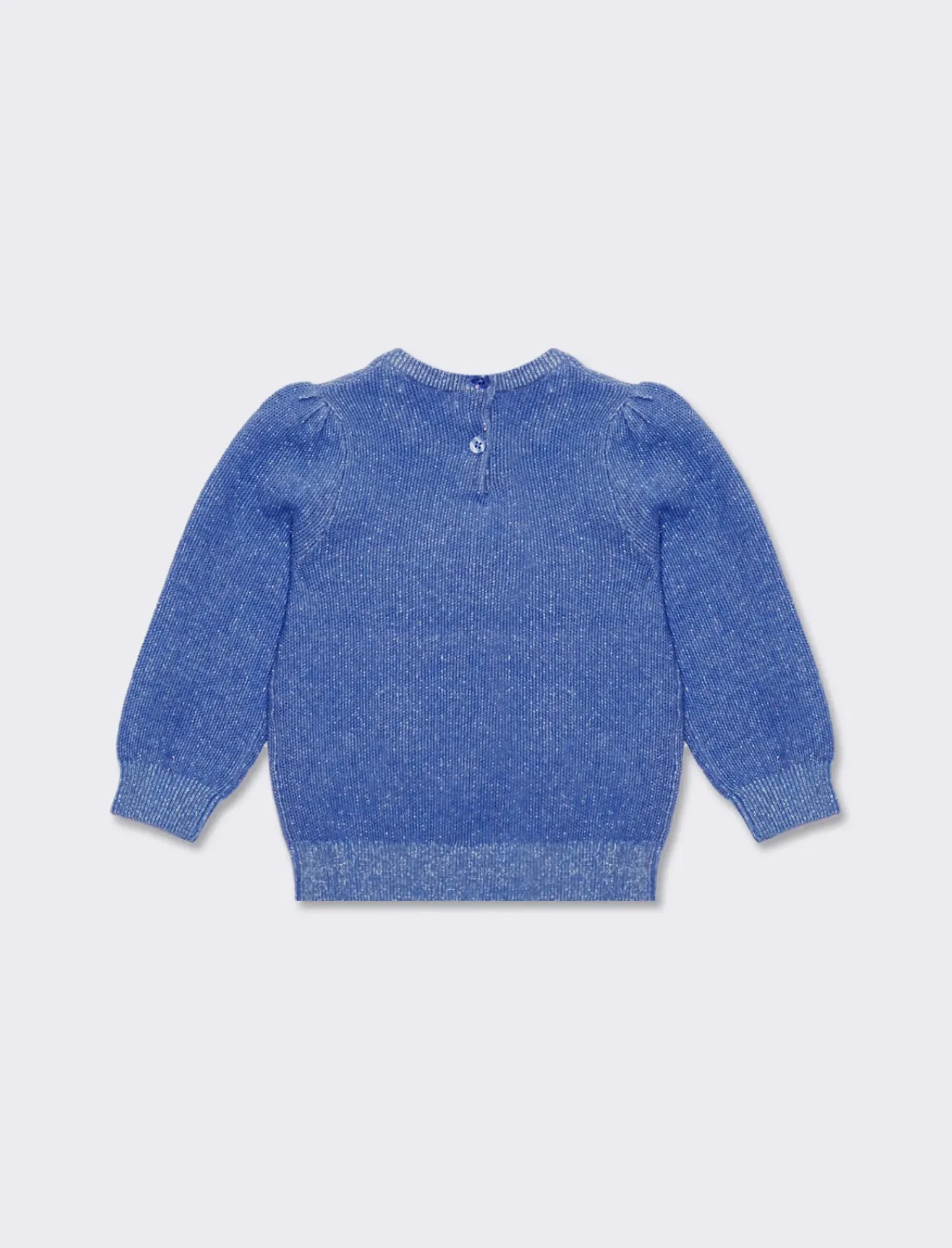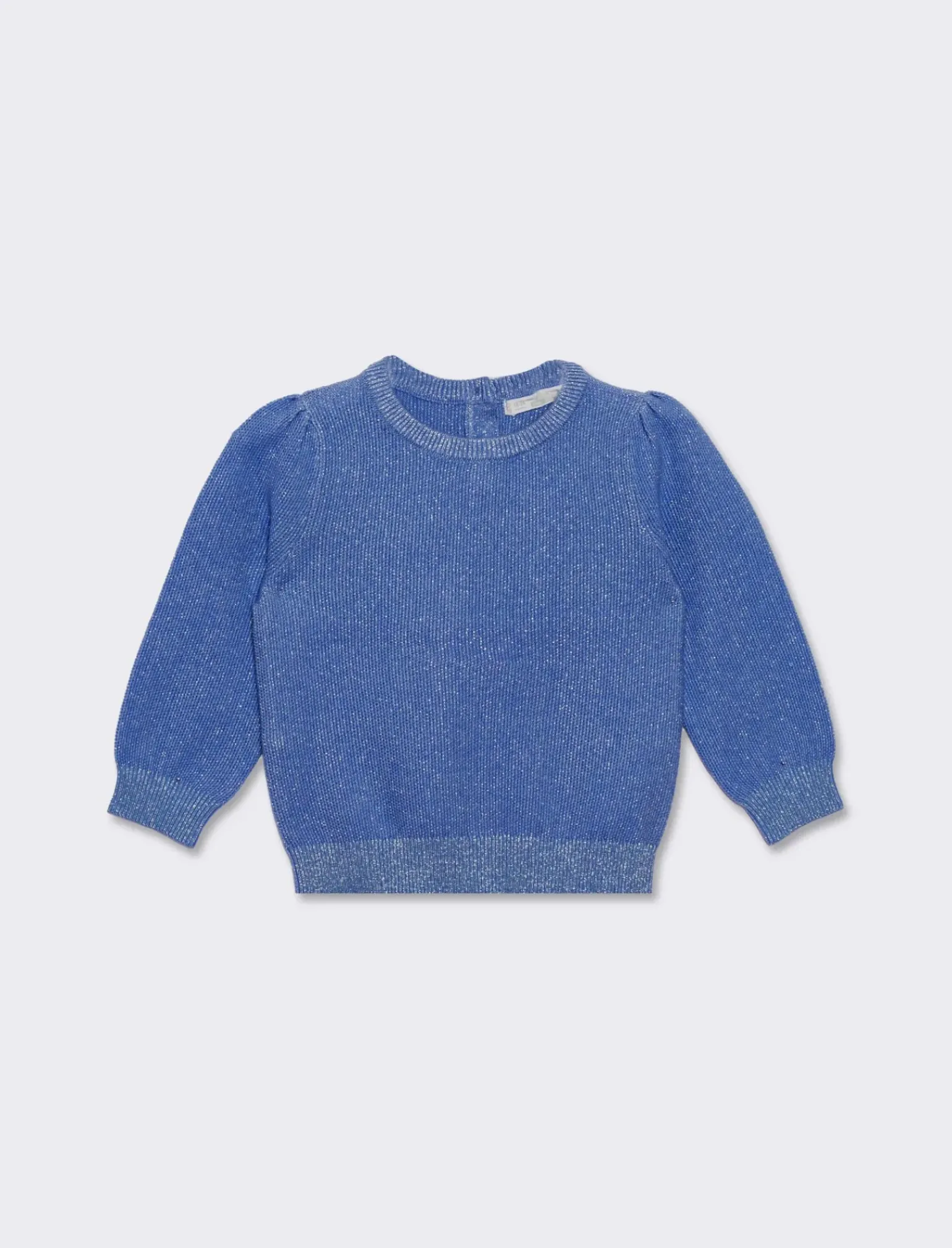 Maglioncino girocollo in lurex, ideale per neonate e disponibile in due varianti di colore. Il lurex è un filato metallizzato che può dare al maglioncino un tocco scintillante e festoso, perfetto per occasioni speciali. Le due varianti di colore offrono opzioni diverse per adattarsi al look della tua bambina. Il prodotto è di colore Azzurro