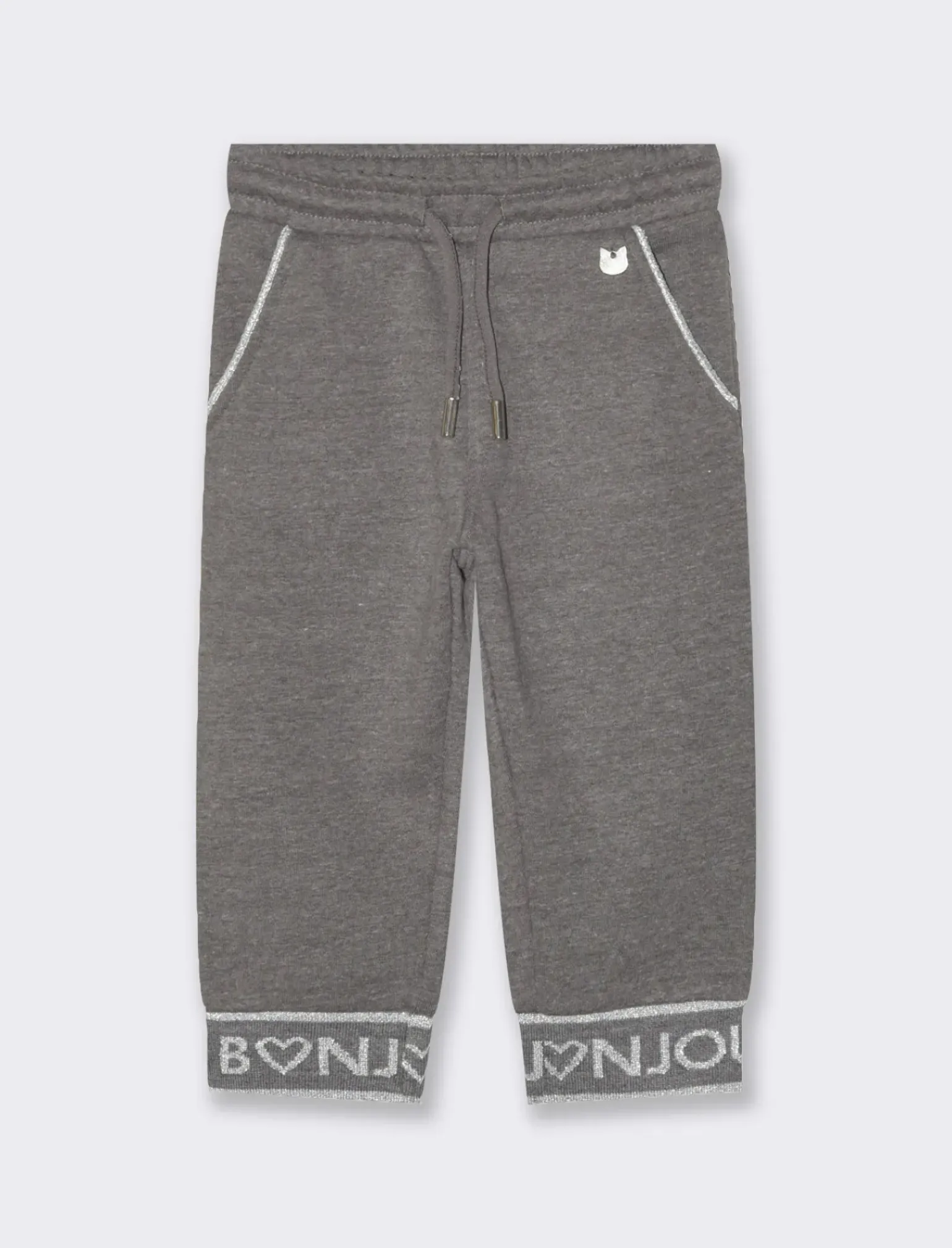 I pantaloni sportivi in felpa con coulisse in vita e motivo jacquard in lurex sulla costina al fondo sono un mix perfetto di comfort e stile. La felpa offre una sensazione di calore e morbidezza, ideale per rilassarsi o fare attività leggere, mentre la coulisse in vita permette di regolare la vestibilità secondo le tue preferenze.Il motivo jacquard in lurex sulla costina aggiunge un tocco di eleganza al tuo outfit. Il prodotto è di colore Grigio mel.