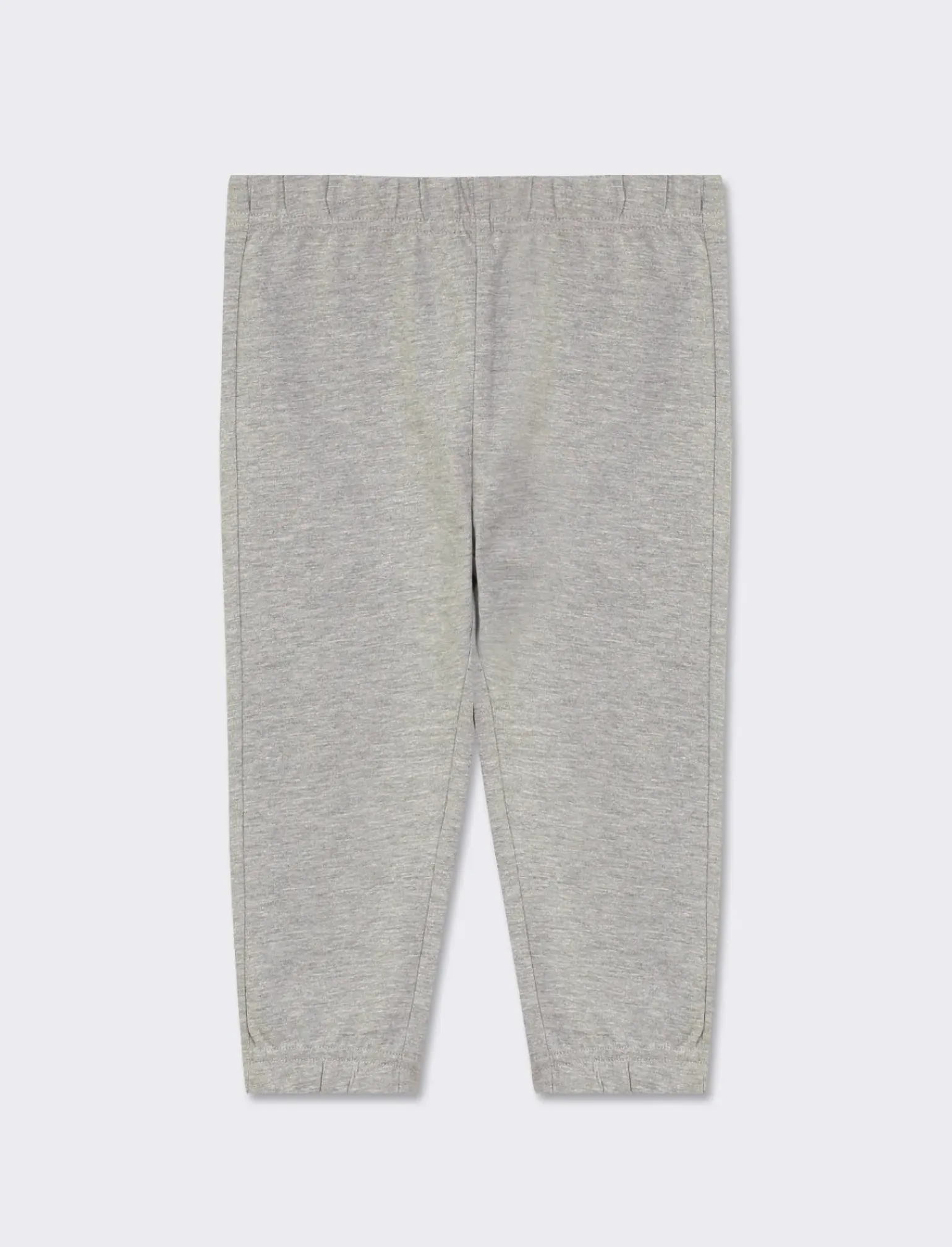 Pantafitness per bambini in felpa neonato con elastico in vita, perfetti per un look sportivo e casual. Disponibili in due vivaci varianti di colore, ideali per accompagnare i più piccoli nelle loro avventure quotidiane. Il prodotto è di colore Grigio mel.