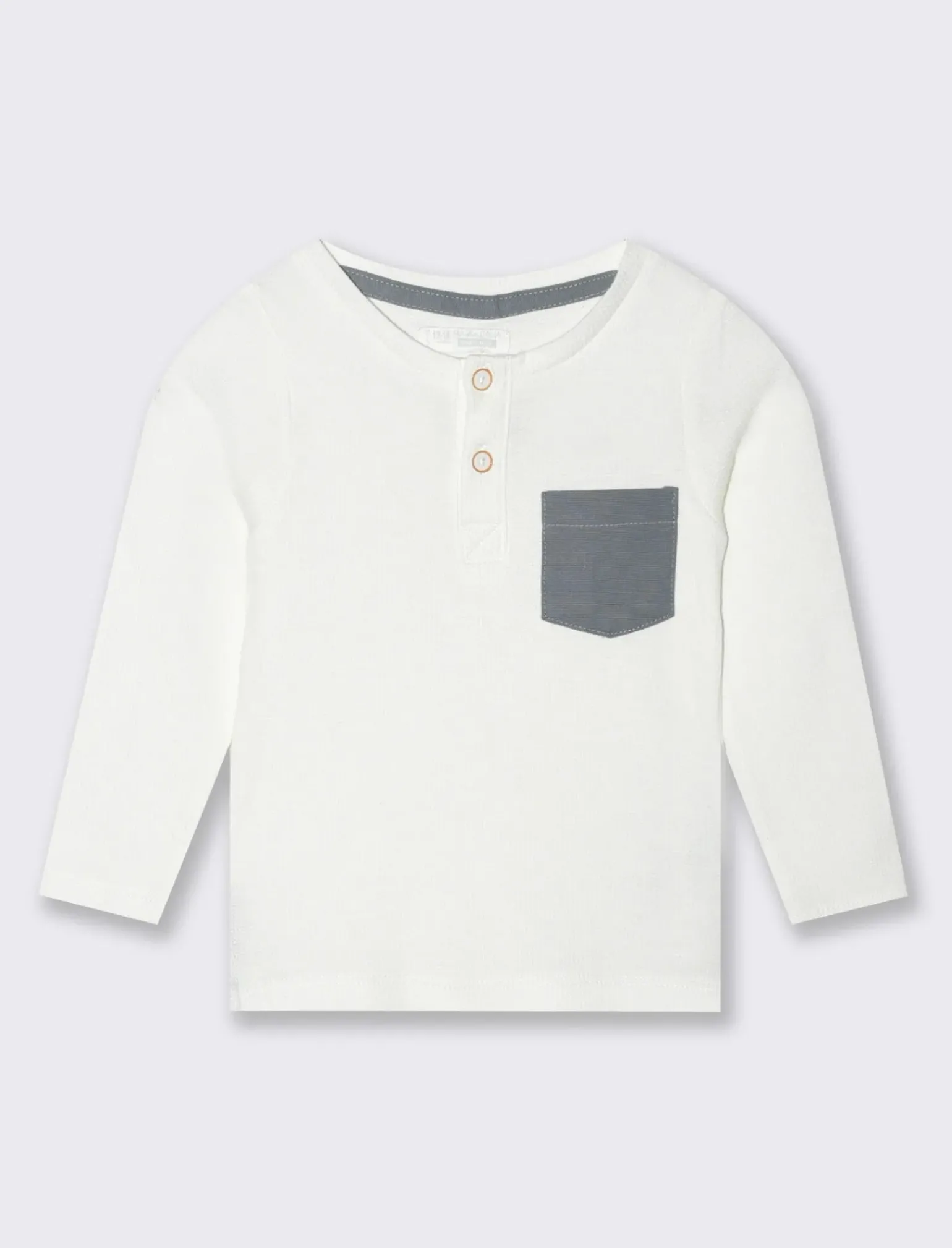 Piazza Italia Neonato|T-Shirt E Top<Maglietta collo serafino con tasca a contrasto – Bianco sporco