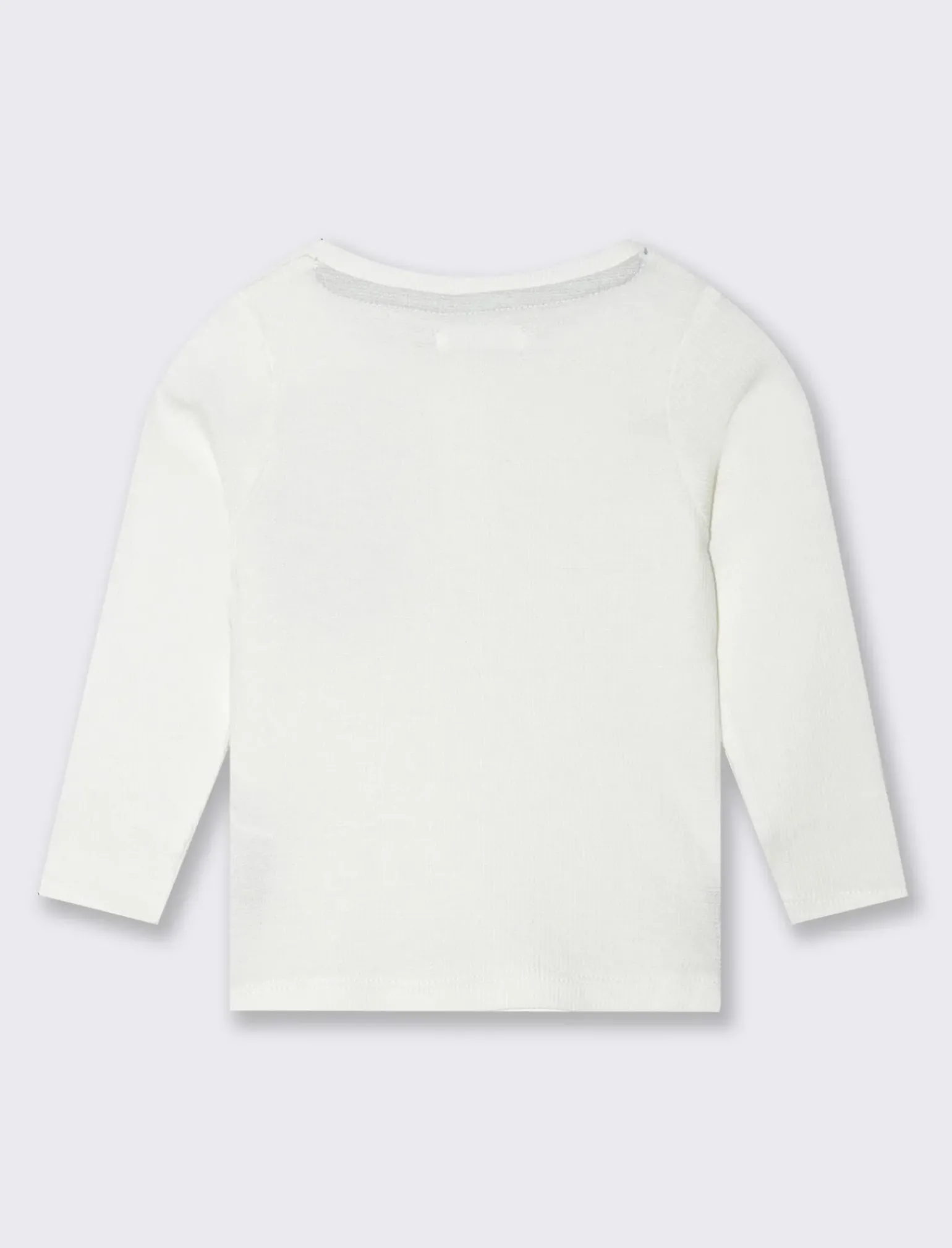 T-shirt per neonato con taschino a contrasto, perfetta per un look alla moda. Realizzata in morbido cotone, con collo serafino e bottoncini effetto legno, questa maglietta a manica lunga è un capo versatile e comodo per il tuo piccolo. Adatta per ogni occasione, dalla passeggiata al parco alle visite in famiglia. Il prodotto è di colore Bianco sporco