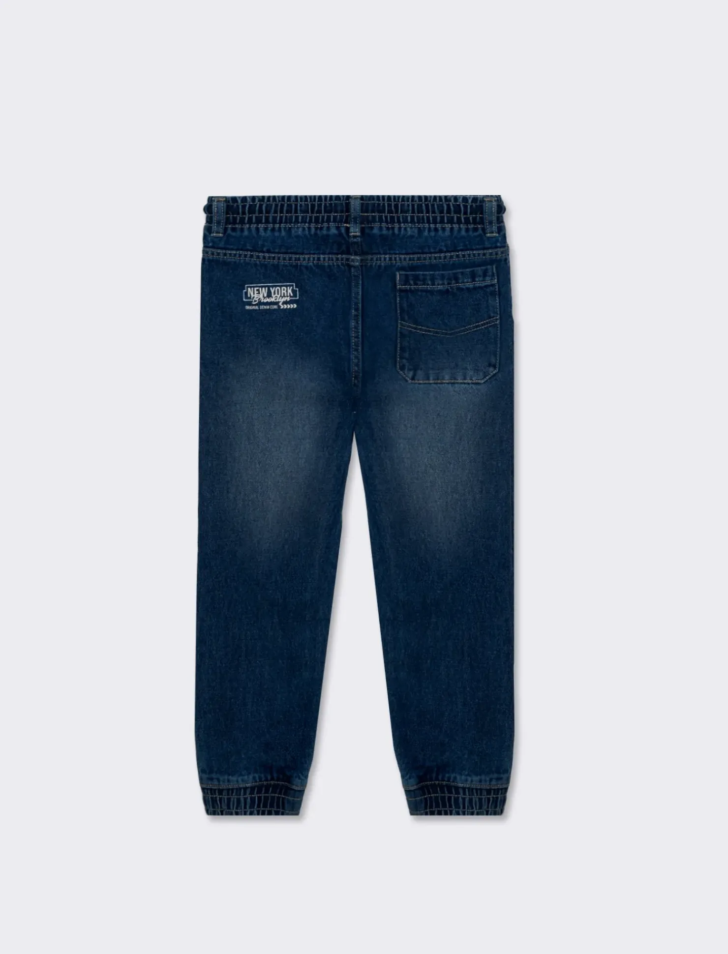 Piazza Italia Pantalone in denim modello jogger con lacci in vita e stampa sul dietro – DENIM SCURO Blu Fashion