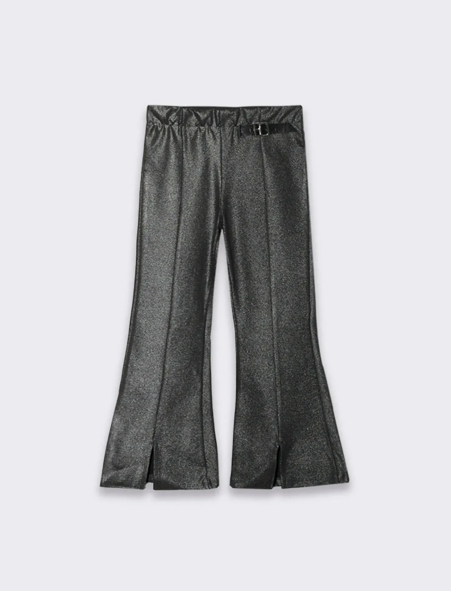 Pantaloni in tessuto elastico laminato, dal design moderno e audace, caratterizzati da un modello a zampa che slancia la figura. La vita elastica offre una vestibilità comoda e adattabile, mentre l’accessorio-fibbia sul davanti aggiunge un tocco di originalità e stile. Ideali per chi desidera un look contemporaneo, questi pantaloni sono perfetti per diverse occasioni, combinandosi facilmente con top e scarpe di vari stili. Il prodotto è di colore Nero