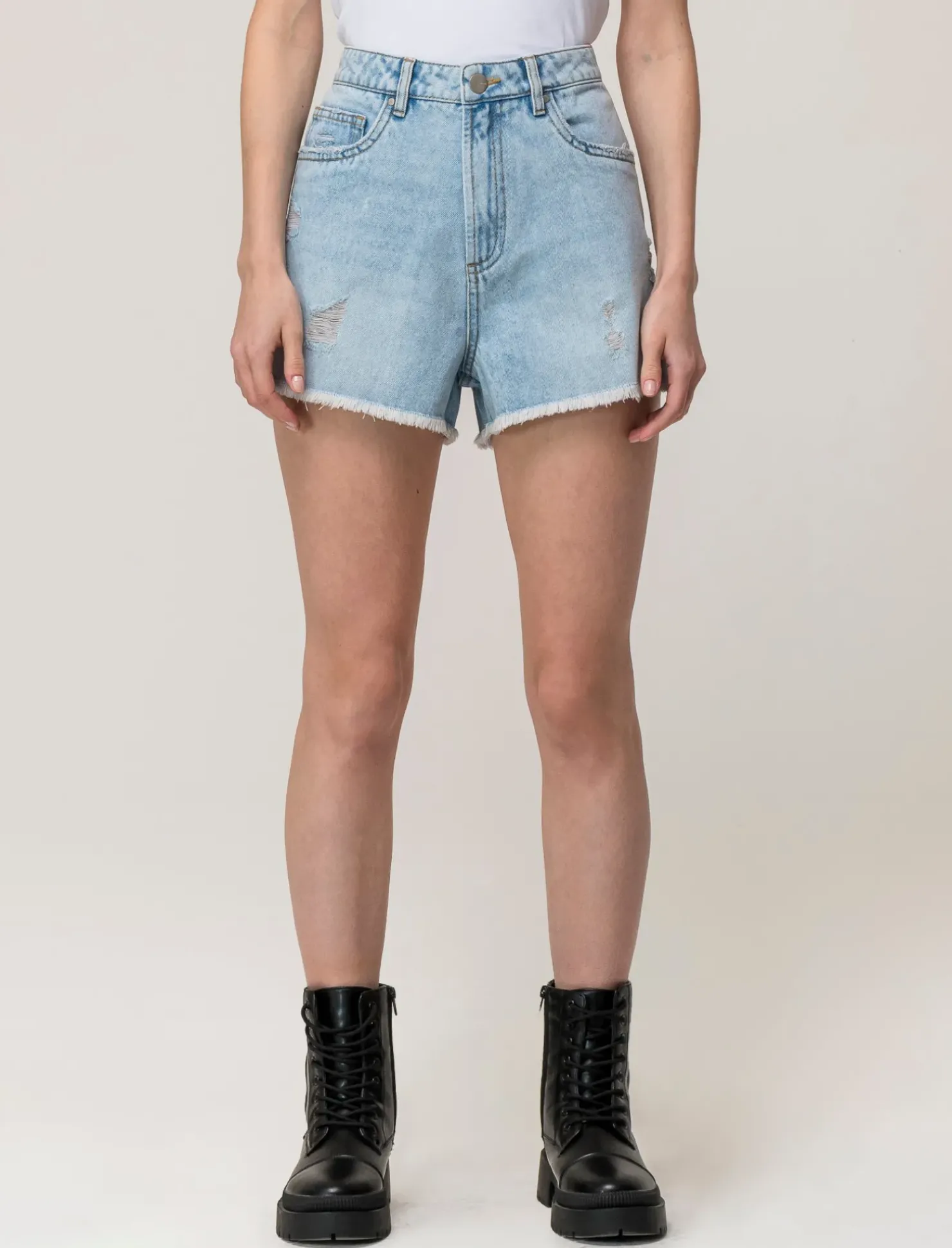 Short paperbag con cintura per un look casual e alla moda. Realizzato in tessuto denim resistente, con un orlo sfrangiato che aggiunge un tocco di originalità. L’apertura con zip e bottone lo rende comodo da indossare. Ideale per un outfit estivo fresco e trendy. Il prodotto è di colore Denim