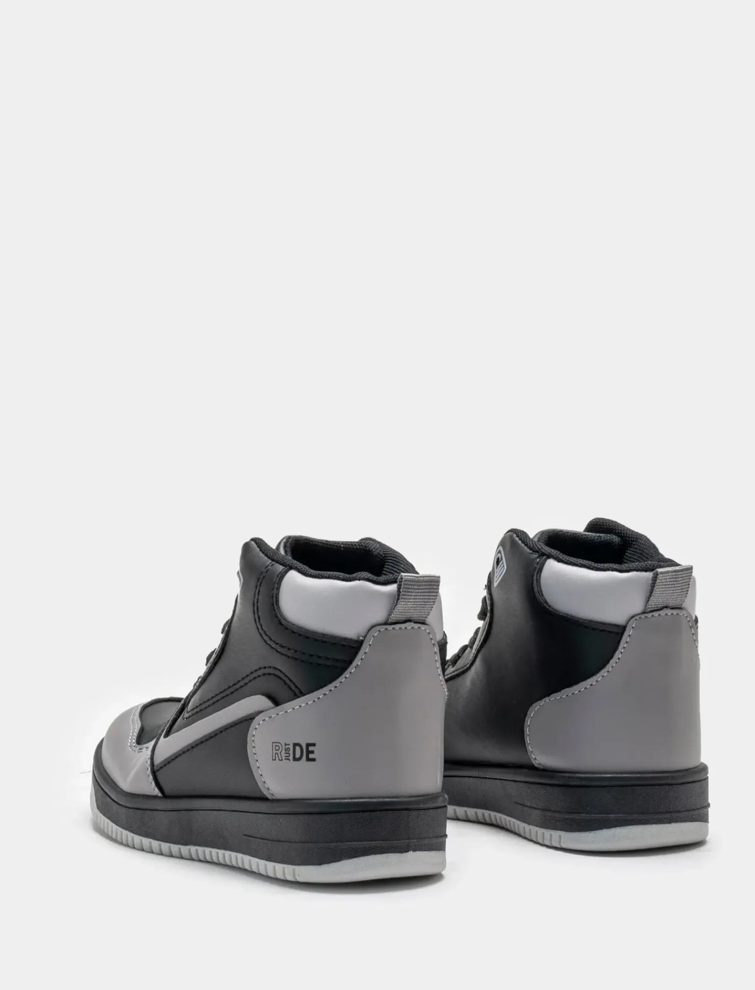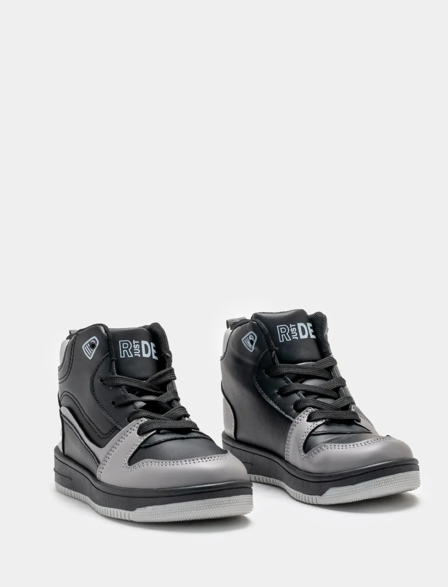 Sneakers a collo alto in poliuretano nero e riporti grigi. Ideali per un look casual e sportivo, perfette da abbinare a jeans o pantaloni sportivi. La suola in gomma garantisce comfort e stabilità in ogni passo. Un must-have per gli amanti dello stile urbano e dinamico. Il prodotto è di colore Nero