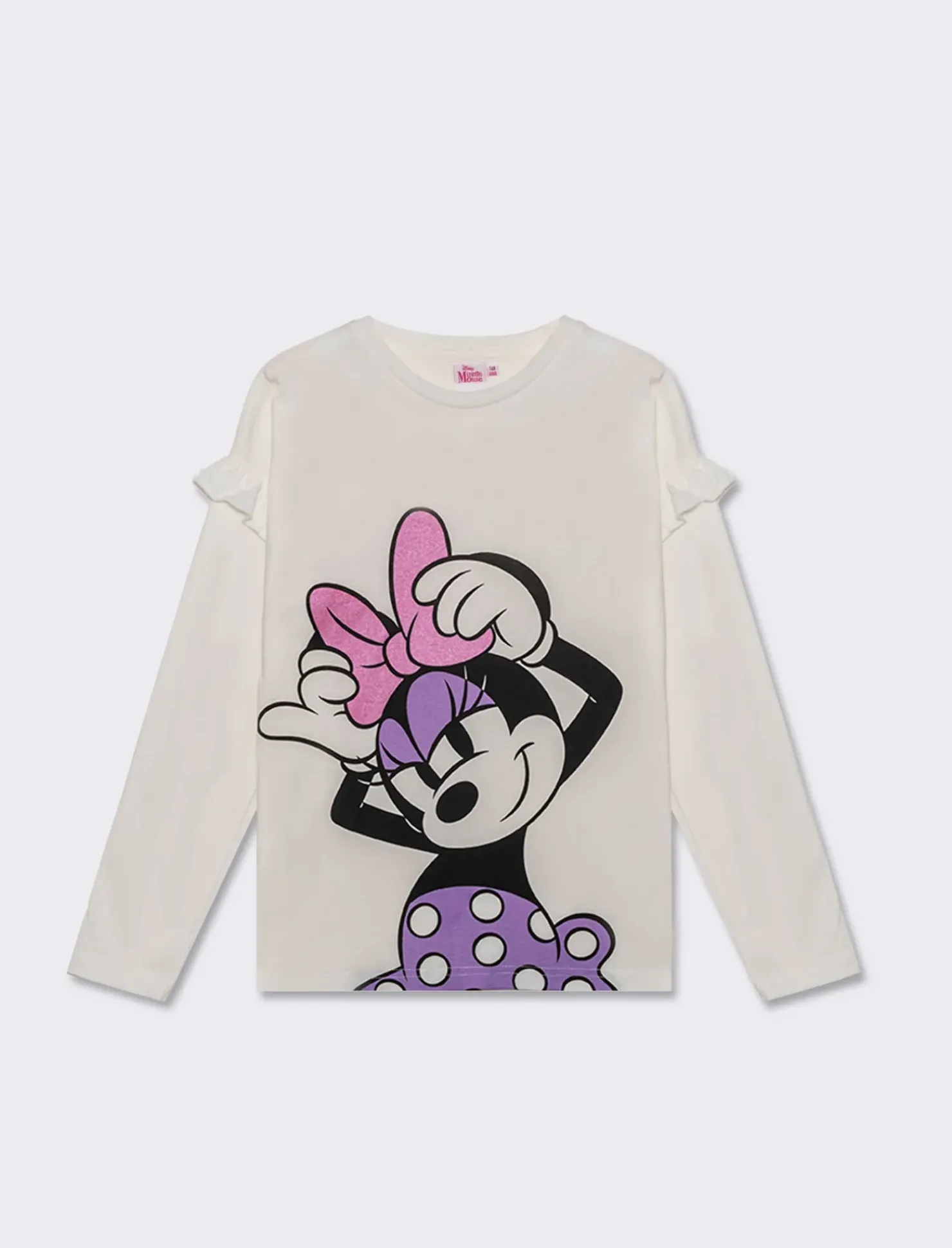 Piazza Italia T-shirt con stampa minnie e rouches alle maniche – sporco Bianco Shop