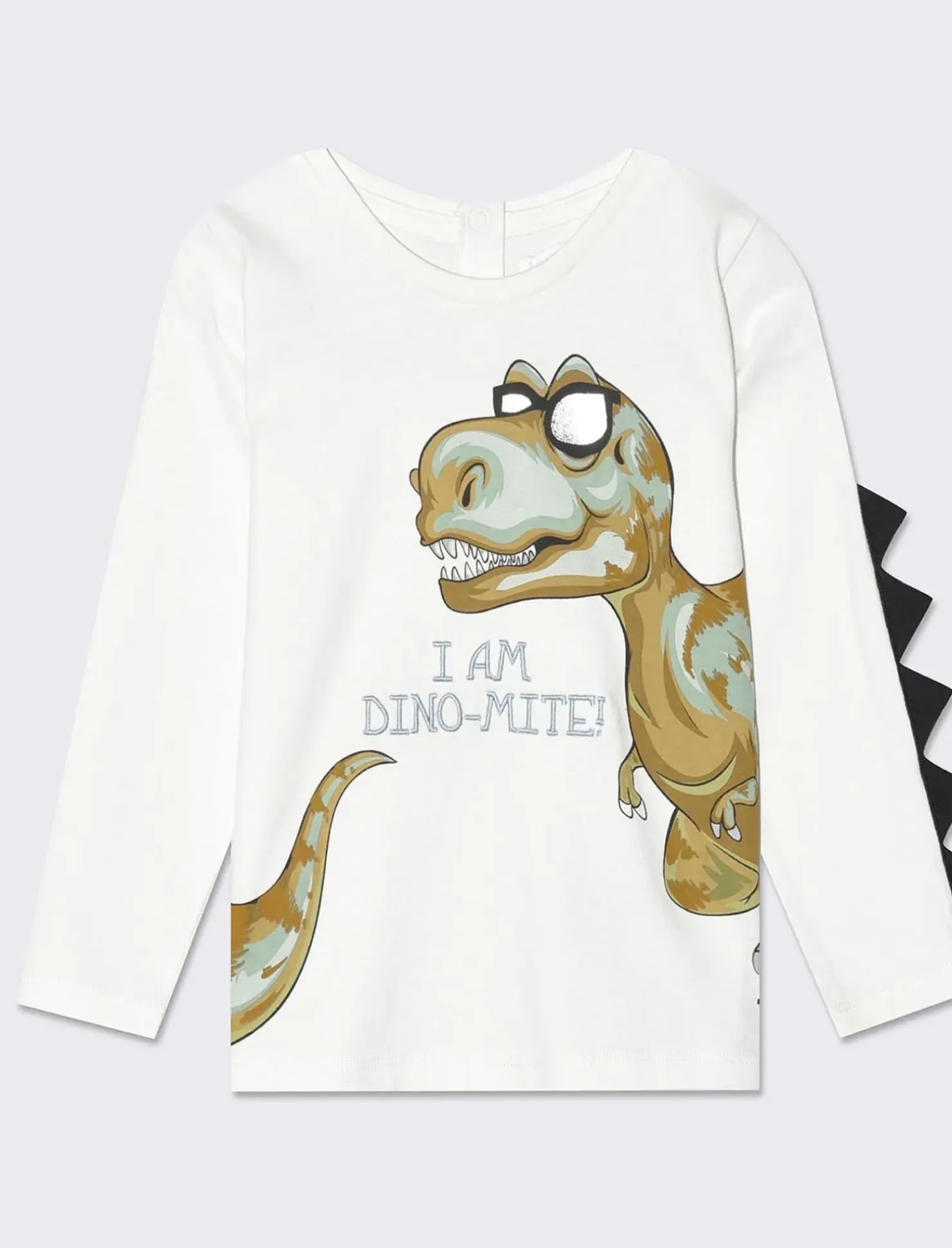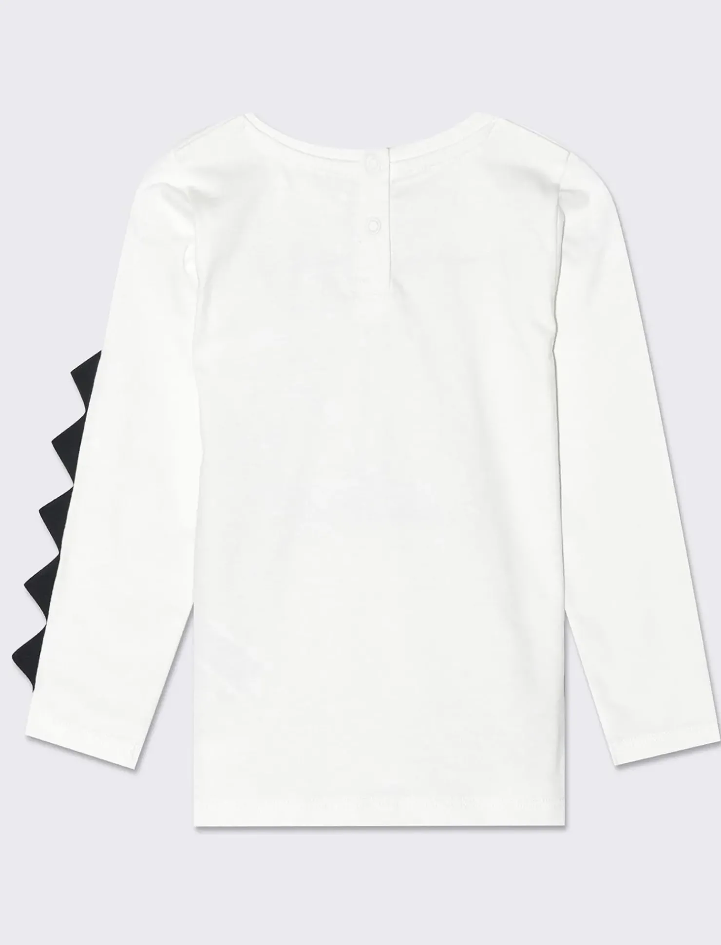 T-shirt con applicazioni da neonato: un capo irresistibile per i più piccoli! Realizzata in morbido cotone, questa T-shirt girocollo a manica lunga è impreziosita da una divertente stampa frontale e da graziose applicazioni sul taglio laterale. Ideale per creare outfit allegri e alla moda per il tuo piccolo fashionista in erba. Il prodotto è di colore Bianco panna