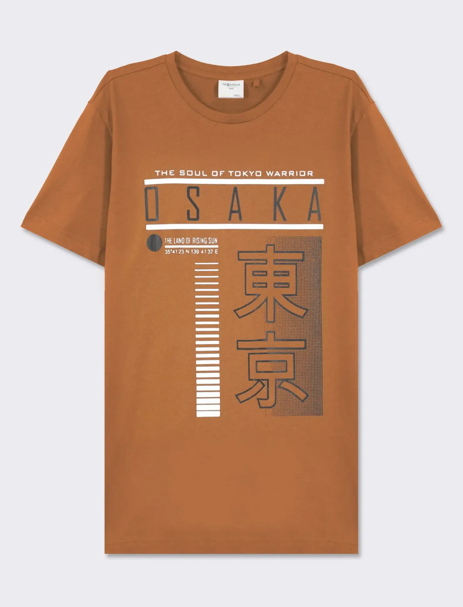 Piazza Italia T-shirt girocollo maniche corte regular fit college inspiration – tabacco Marrone Cheap