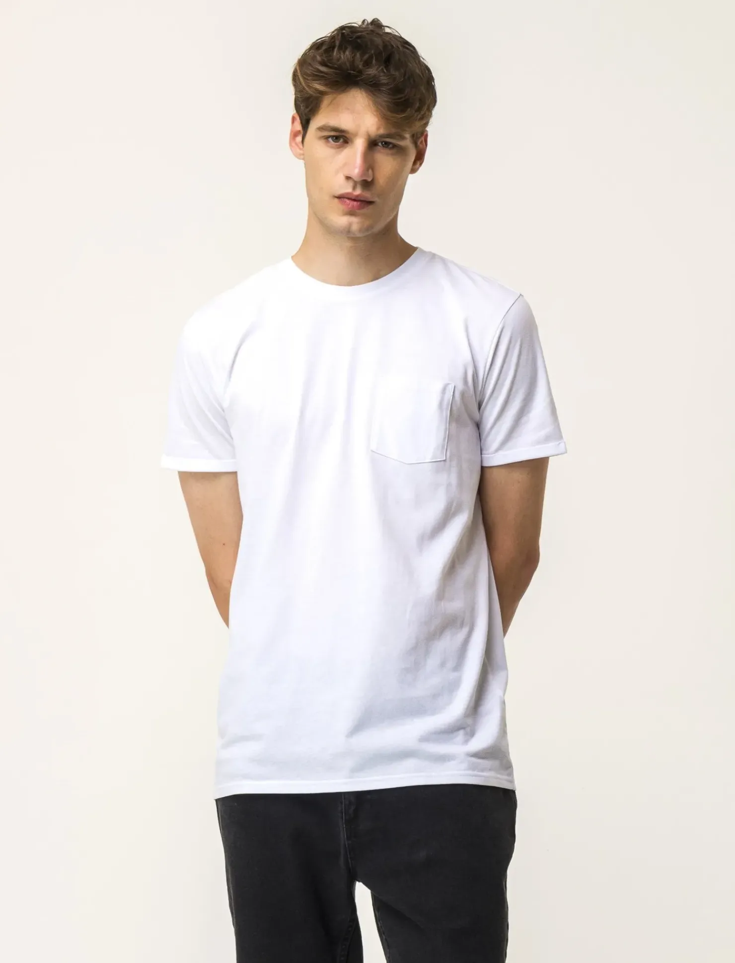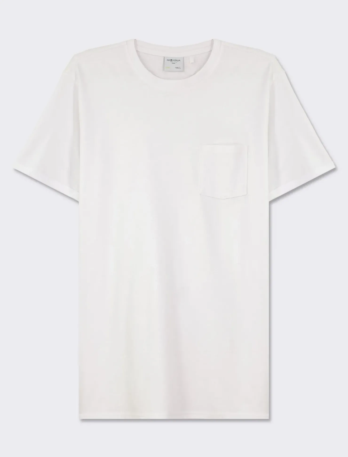 T-shirt basic con taschino, perfetta per un look casual e comodo. Realizzata in morbido jersey di cotone, questa maglietta girocollo è un capo essenziale nel guardaroba di ogni uomo. La tasca sul petto aggiunge un tocco di stile e praticità. Ideale da indossare in ogni occasione, dalla giornata in ufficio al weekend con gli amici. Il prodotto è di colore Bianco