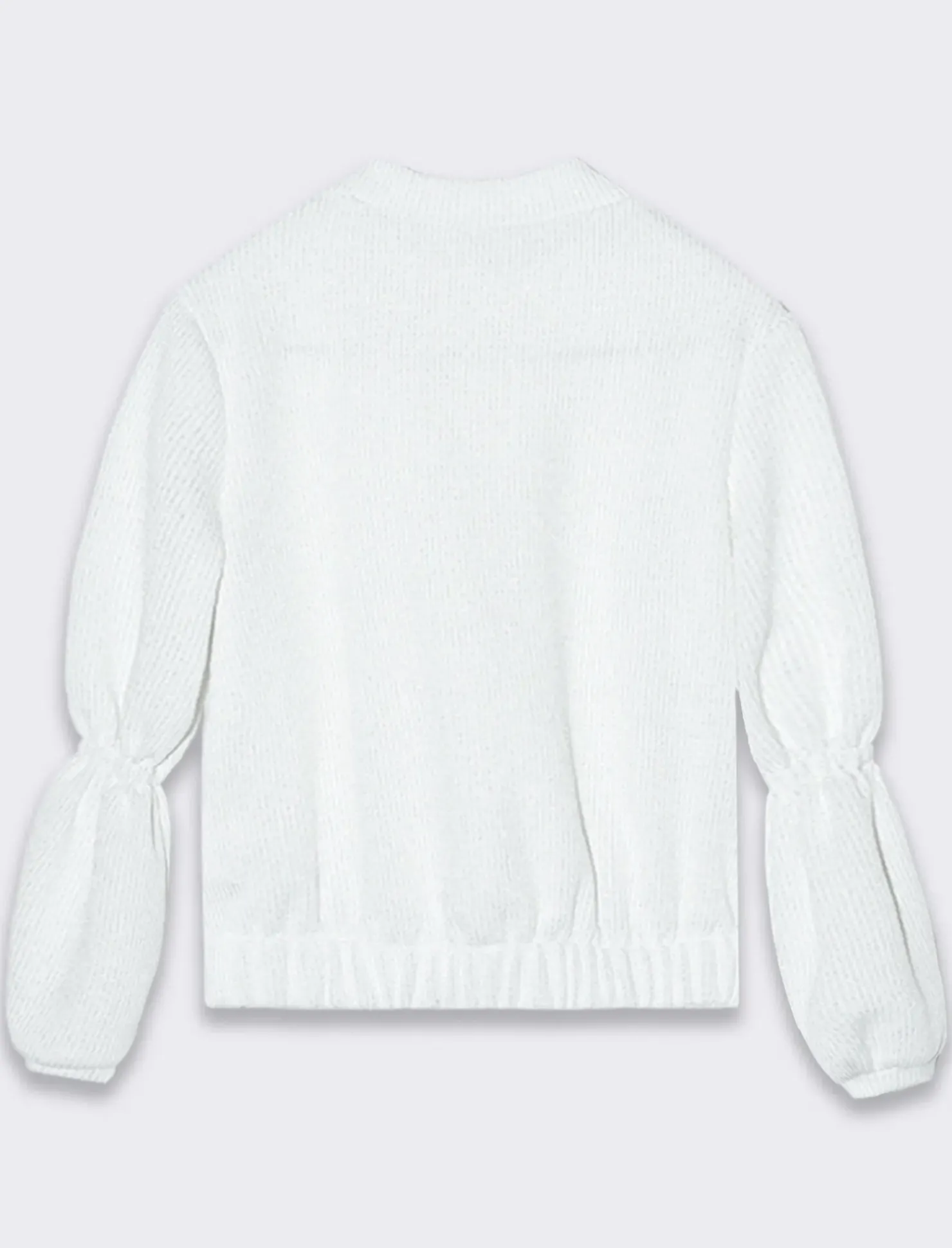 T-shirt da bambina in maglina con filo silver metallizzato.Elastico al fondo e sulle maniche, mezzo collo e vestibilità regular.Perfetta per un look glamour. Il prodotto è di colore Bianco panna