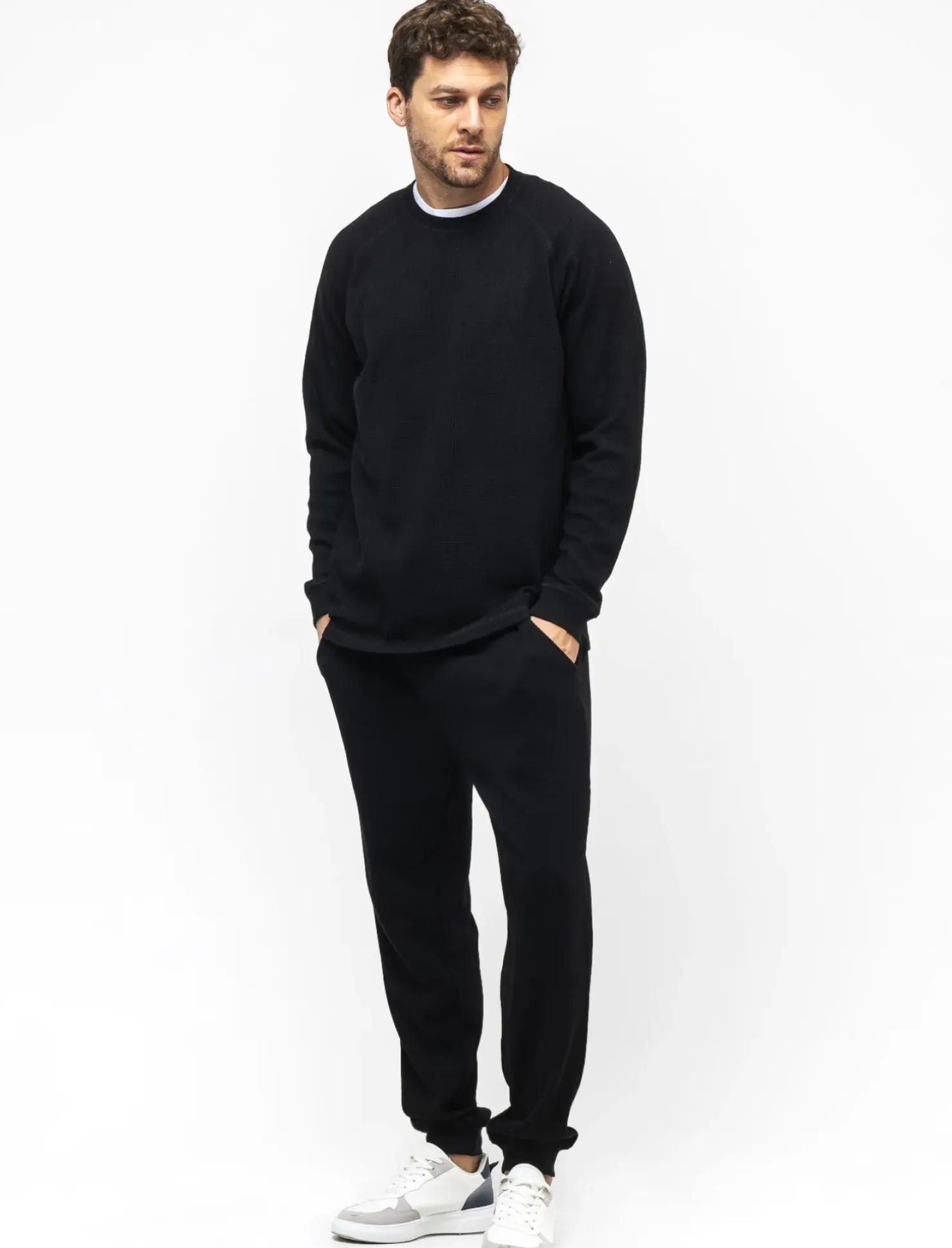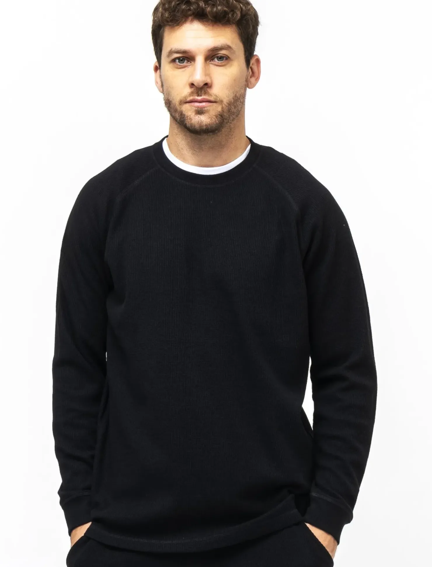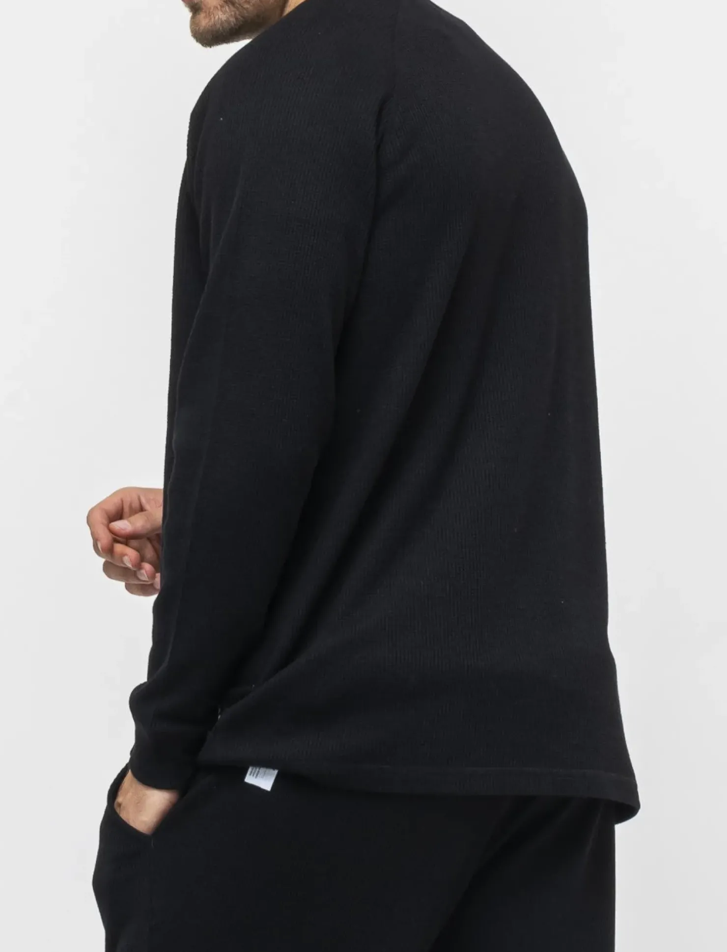 T-shirt maniche lunghe in morbido cotone con struttura a waffel, ideale per un look casual e confortevole. Il taglio regular fit assicura una vestibilità comoda e adatta a ogni occasione. Il dettaglio del badge ricamato sul fondo anteriore aggiunge un tocco di stile in più. Perfetta da indossare in ogni stagione, questa t-shirt è un must-have nel guardaroba di ogni uomo alla moda. Il prodotto è di colore Nero