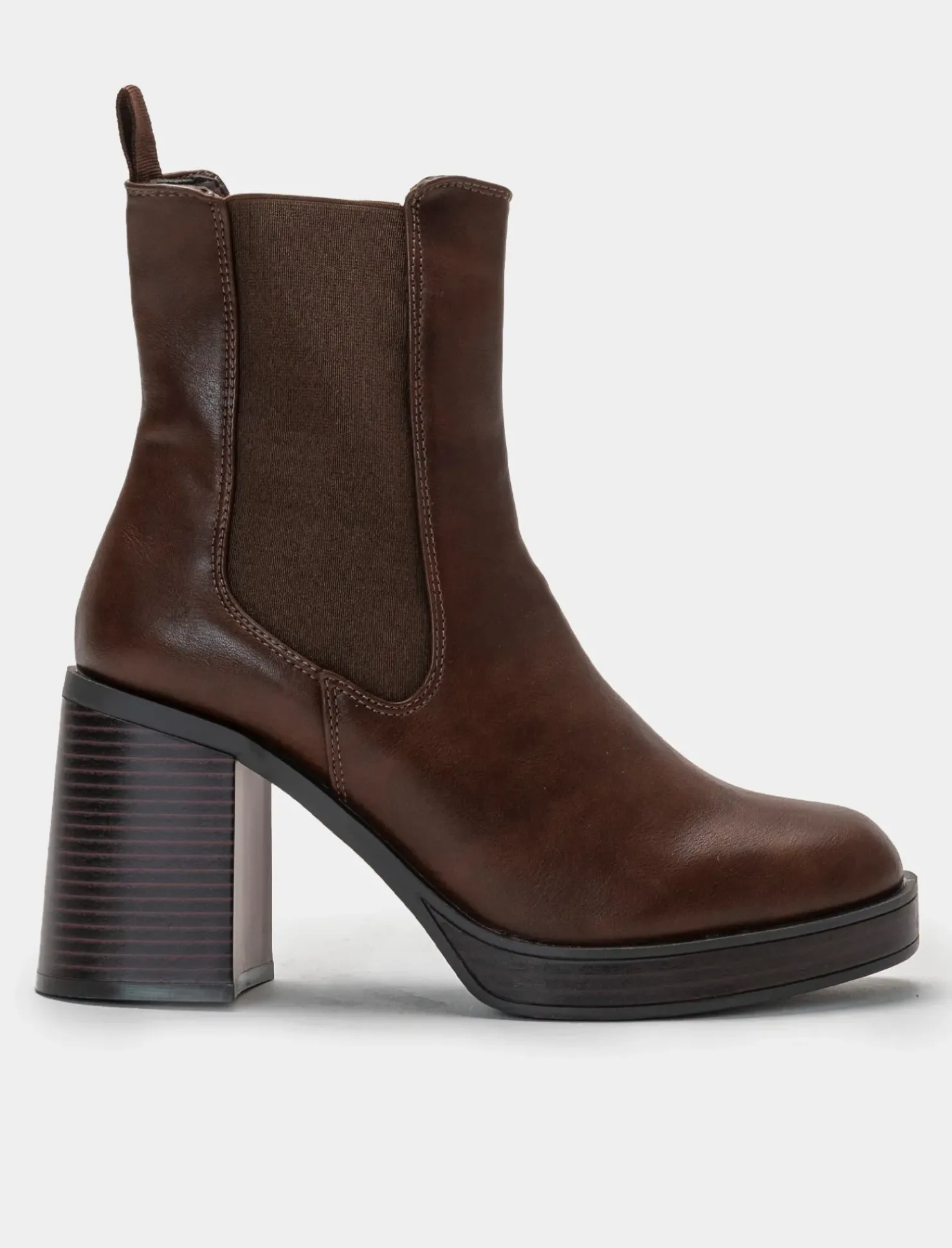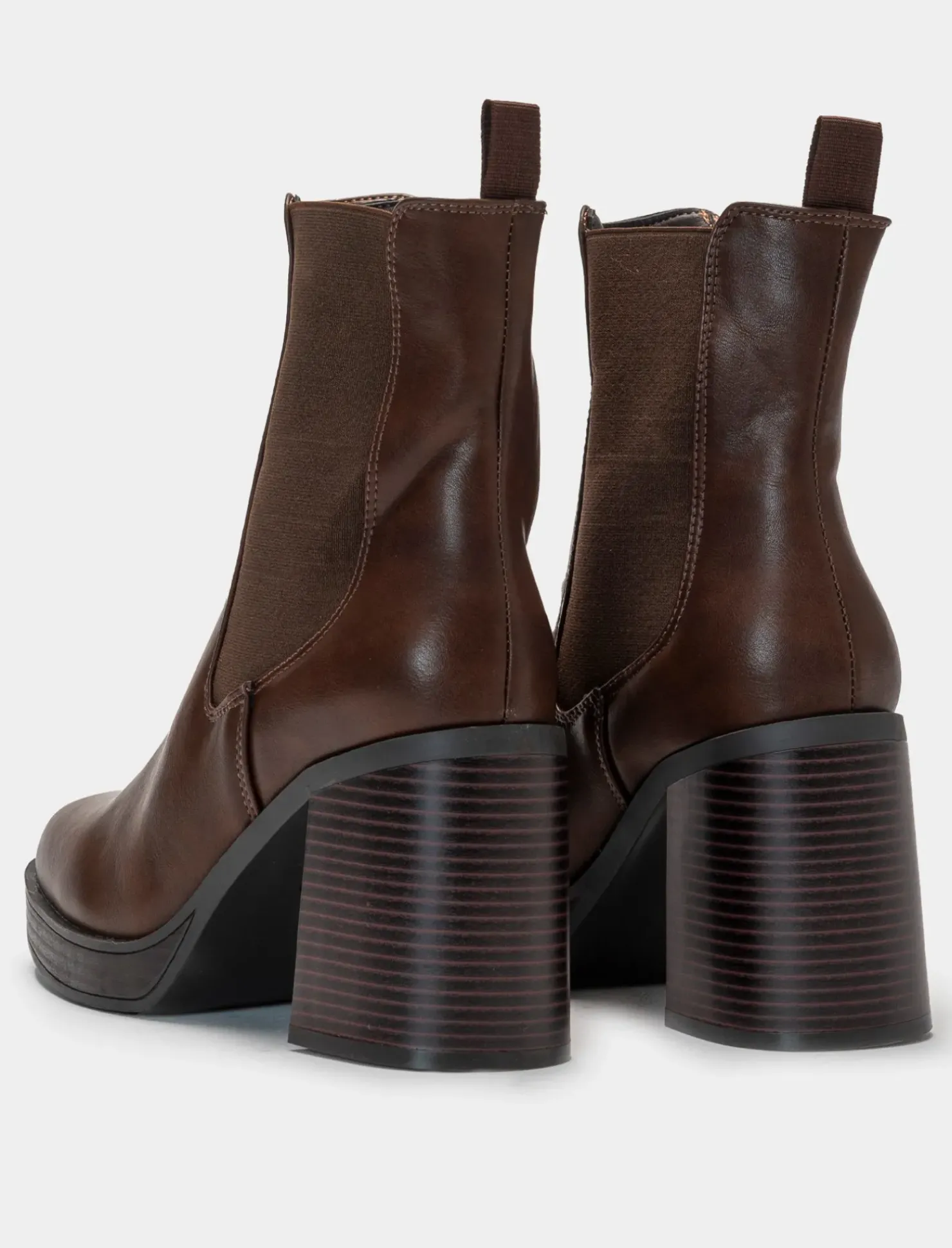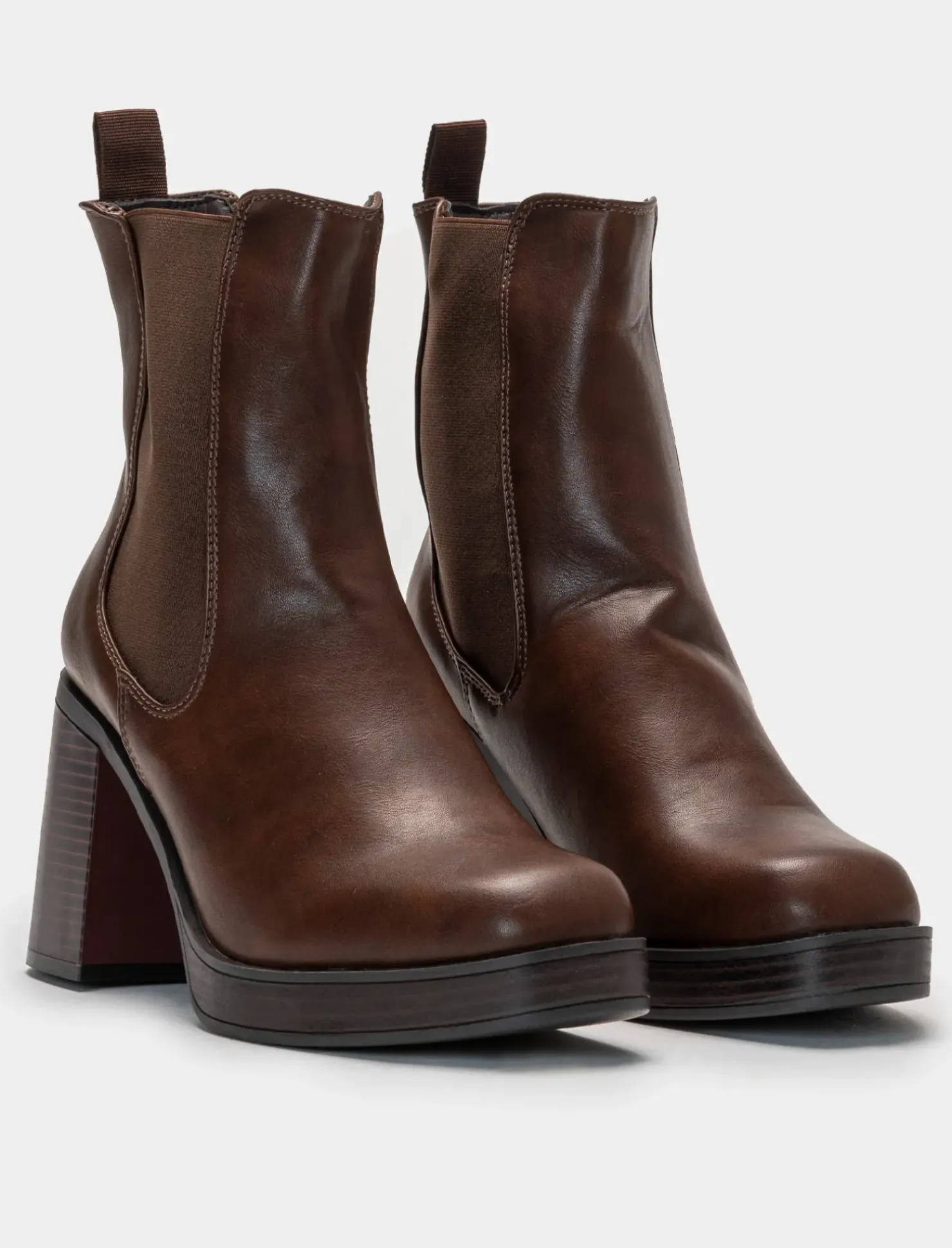 Piazza Italia Tronchetto con punta quadrata e fasce elastiche laterali – Marrone Hot
