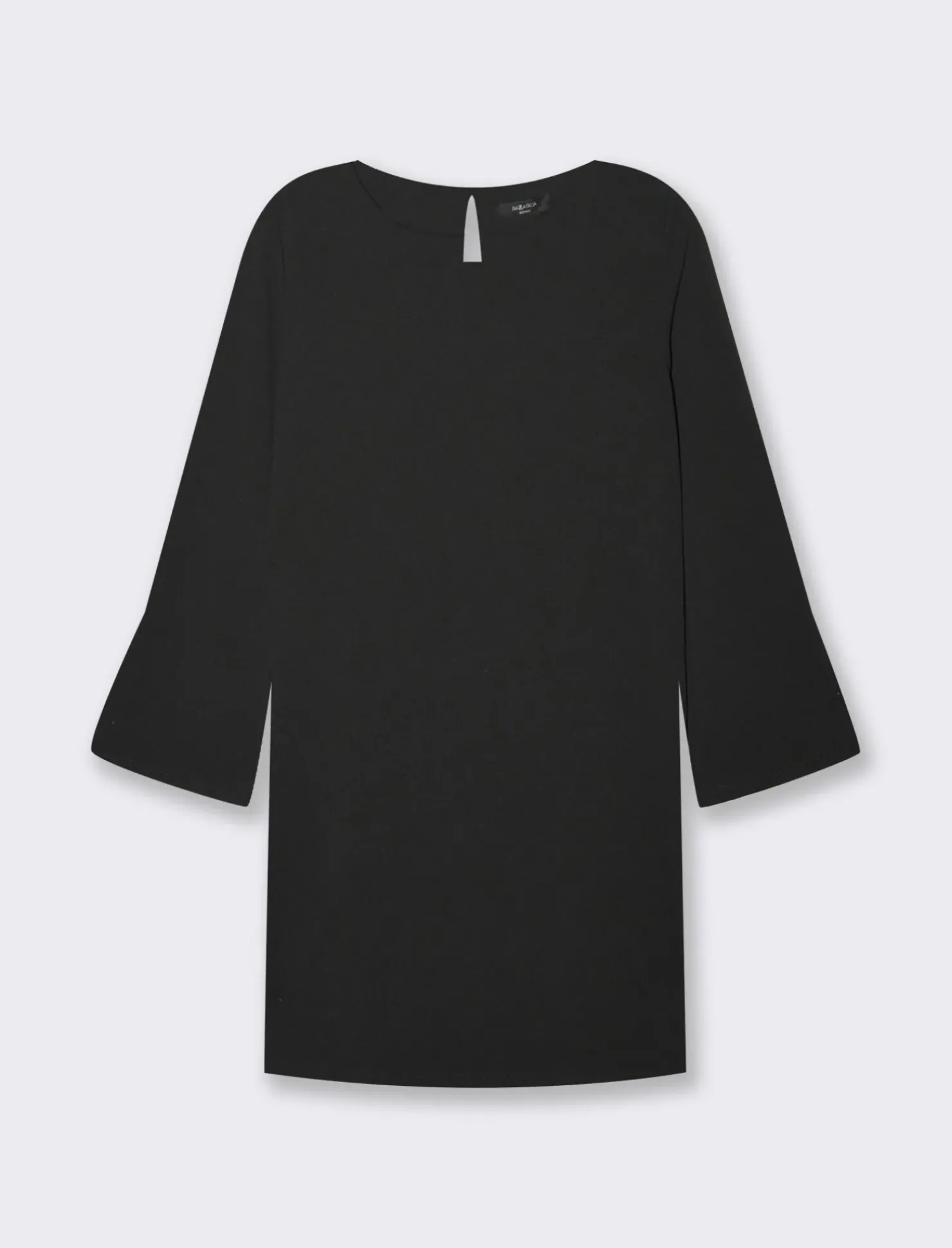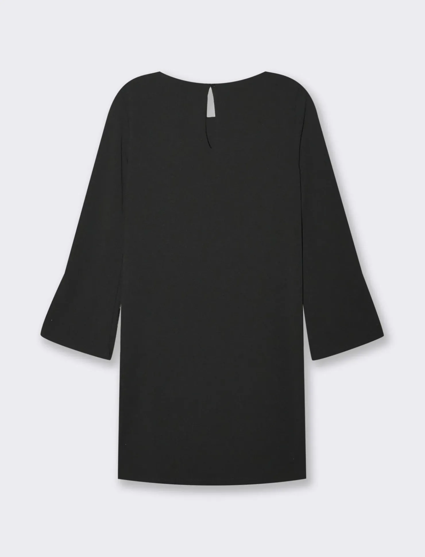 Piazza Italia Vestito corto manica lunga svasata con bottone. – Nero New