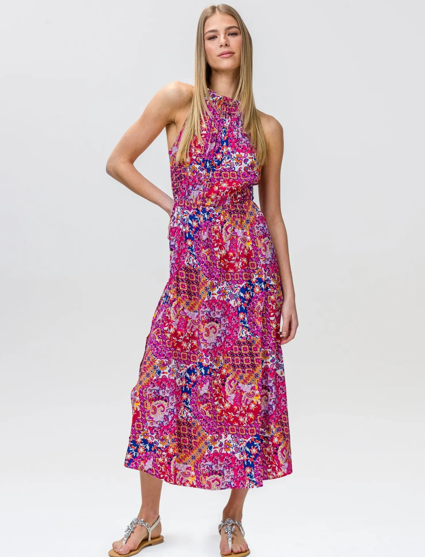 Piazza Italia Vestito lungo fantasia con elastico in vita – var 3 Flash Sale