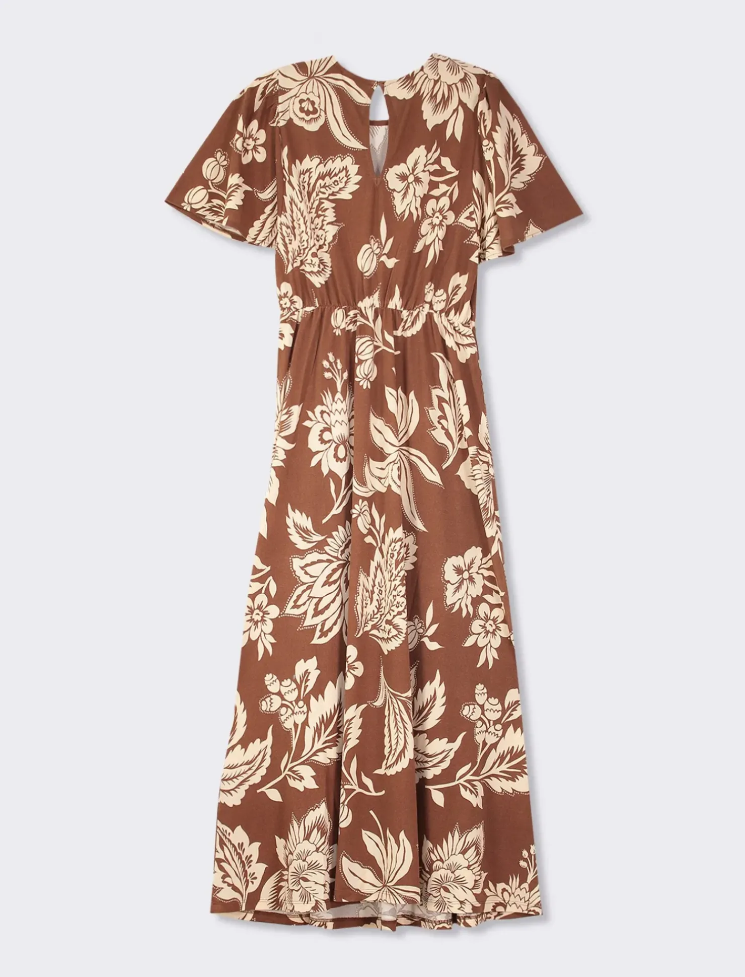 Il vestito lungo in tessuto crepe stampato è l’ideale per chi ama distinguersi con stile. Lo scollo tondo e l’apertura sul retro conferiscono un tocco di eleganza, mentre lo spacco profondo sul davanti lo rende un capo unico e di tendenza. Perfetto per occasioni speciali o per un look sofisticato di tutti i giorni, questo vestito lungo fantasia sarà un’aggiunta preziosa al tuo guardaroba. Scegli l’eleganza con questo capo dalla femminilità senza tempo. Il prodotto è di colore var 2